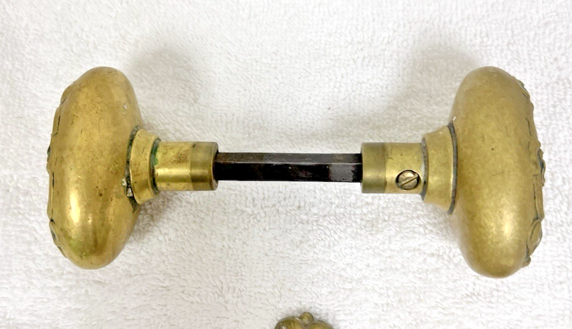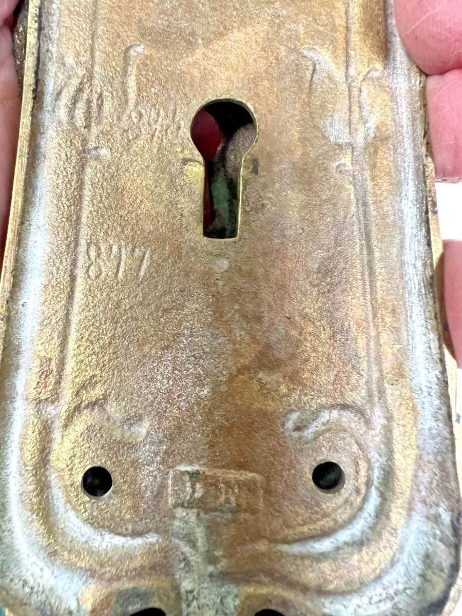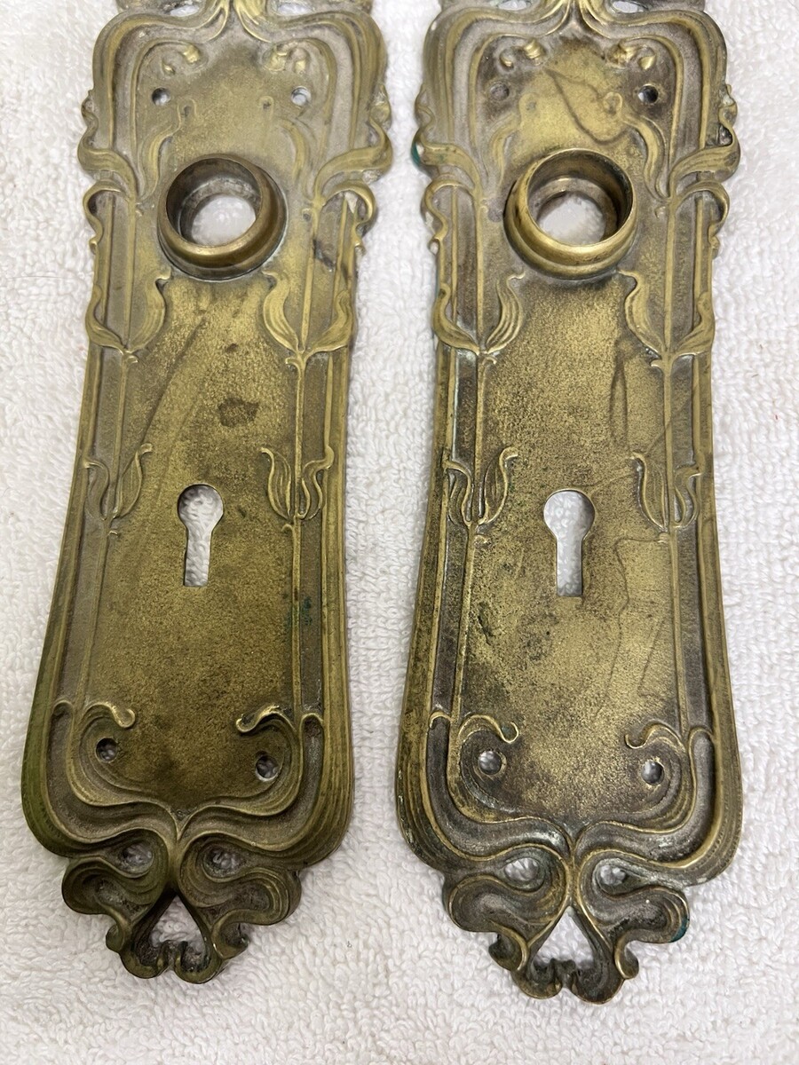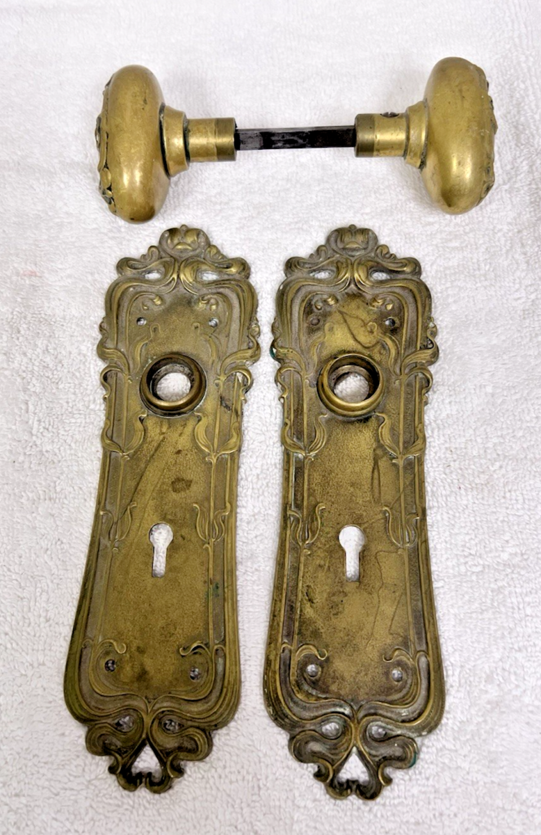Antique Large Ornate Brass Bronze Art Nouveau Brass Doorknob Backplate Set