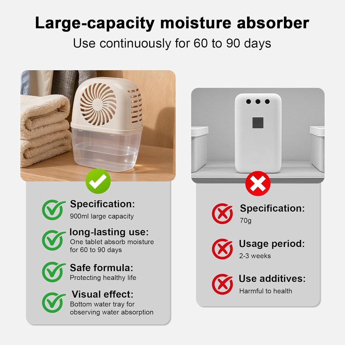 Features: Moisture Absorber,High Efficiency,Large-area hollow design,360 moisture absorption,Air freshener,Water storage tray,Leak-proof design,Reusable,Portable,Quiet operation
