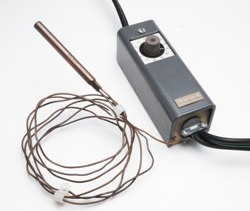 HONEYWELL T4031A1073 METAL REFRIGERATOR TEMPERATURE THERMOSTAT CONTROLLER -30 TO 90F 8FT LOOP COOPER BULB SENSOR PRE-WIRED BREWING WINE MAKING FERMENTATION