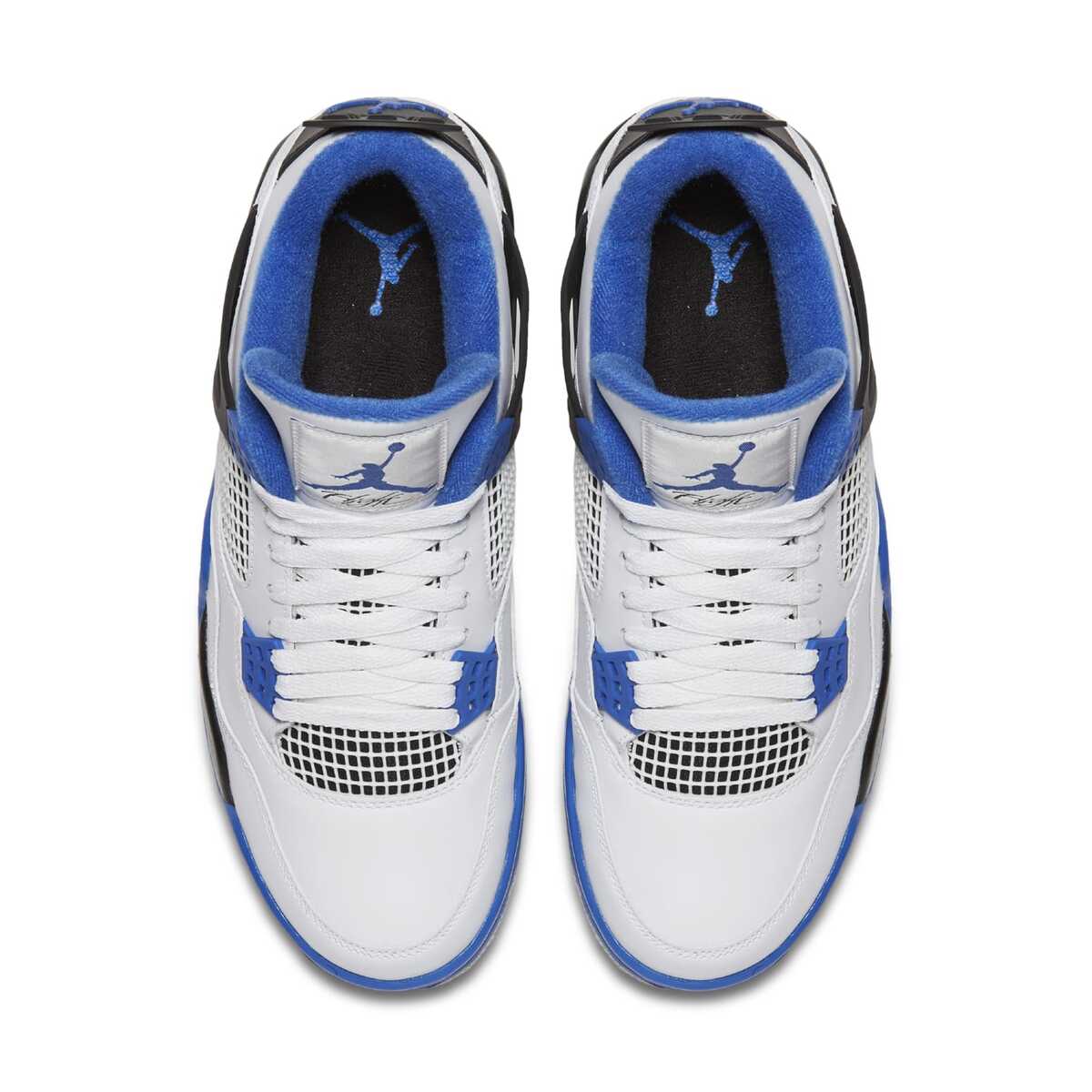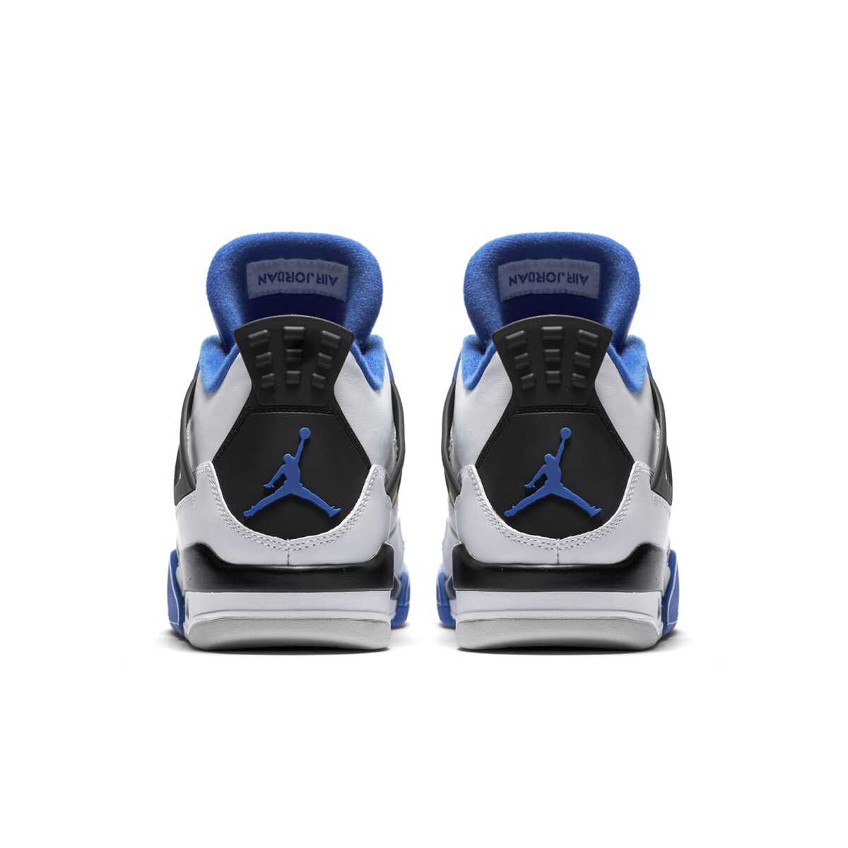 The Air Jordan 4 Retro ?Motorsports? was launched in 2017, modeled after a limited edition pair that was gifted to members of Michael Jordan?s motorcycle racing team. The 2017 version for the general public features the team colors of white, black, and varsity royal blue, but omits the Mars Blackmon heel accent present on the 2006 pair.