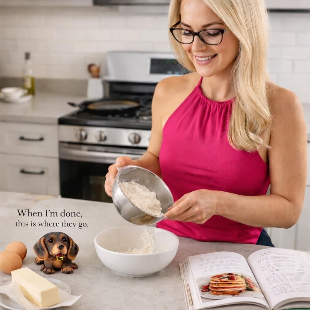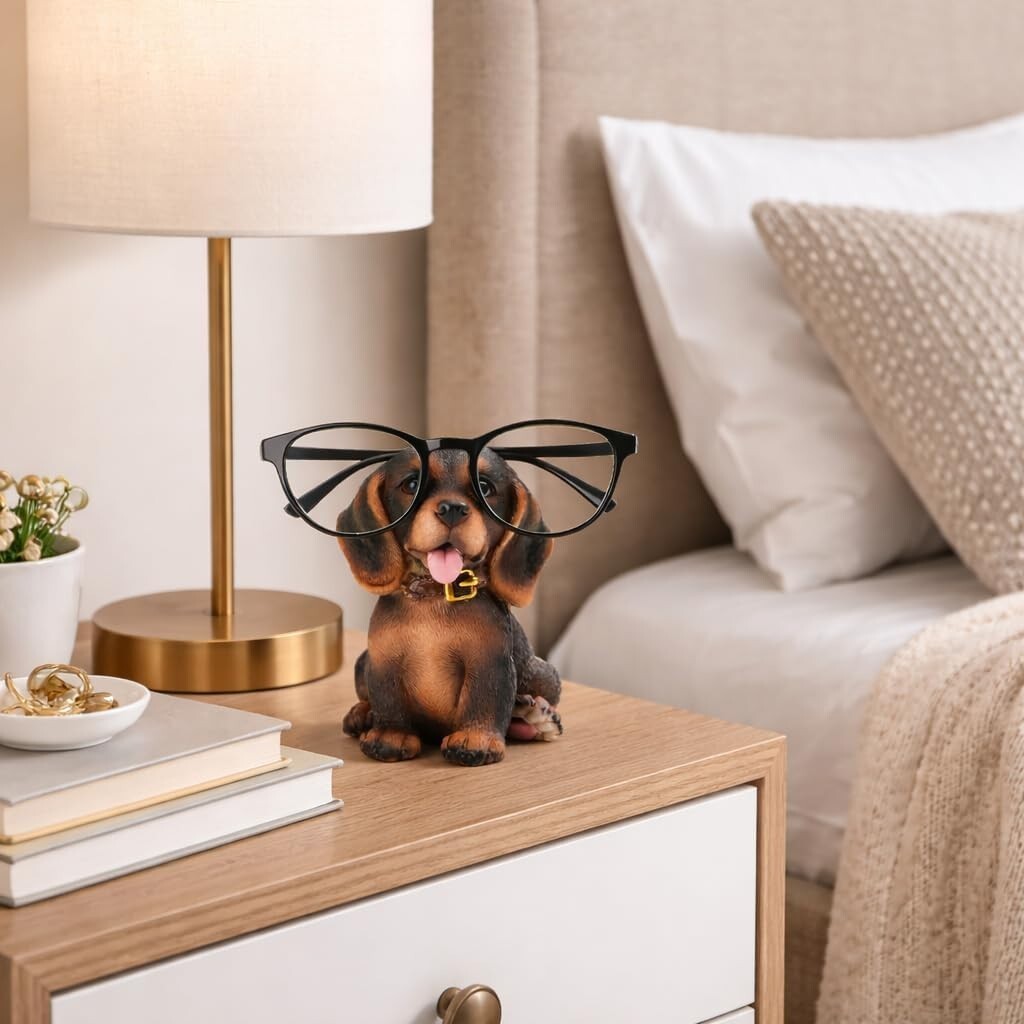 This dog eyeglass holder provides a practical way to store reading glasses or sunglasses when not in use. The dachshund figurine design holds eyewear upright, helping keep lenses off flat surfaces to reduce contact and scratches.