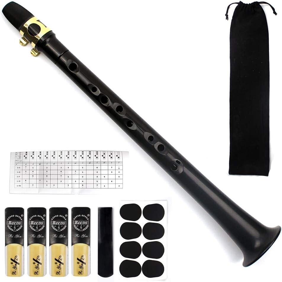 Pocket Saxo Kit, Mini Sax Portable Woodwind Instrument Professional instruments with 4 Reeds, 8 Dental pad, Fingering Charts, Carrying Bag for Amateurs and professional performers black
