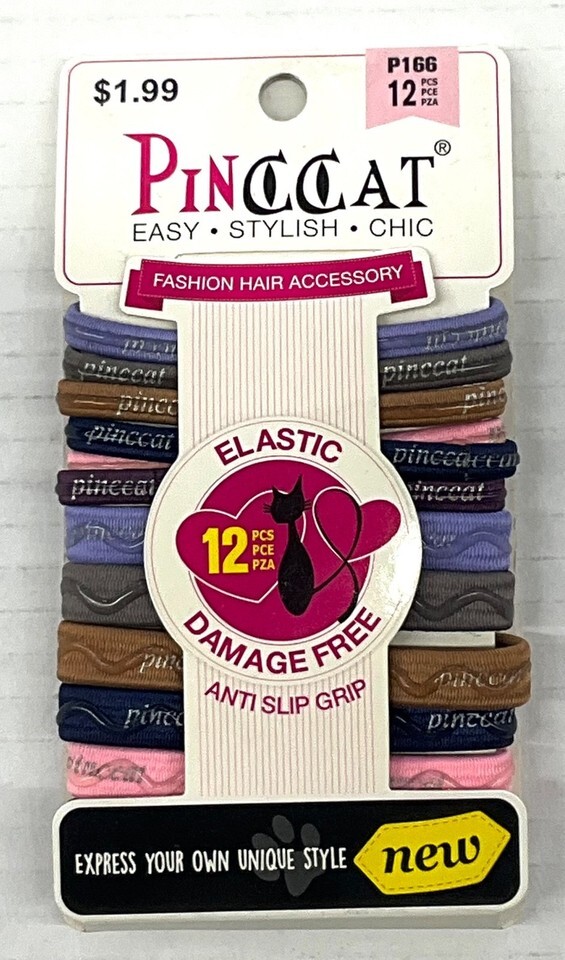 PINCCAT ANTI SLIP GRIP ELASTIC DAMAGE FREE PONYTAIL HOLDER #P166 12 COUNT