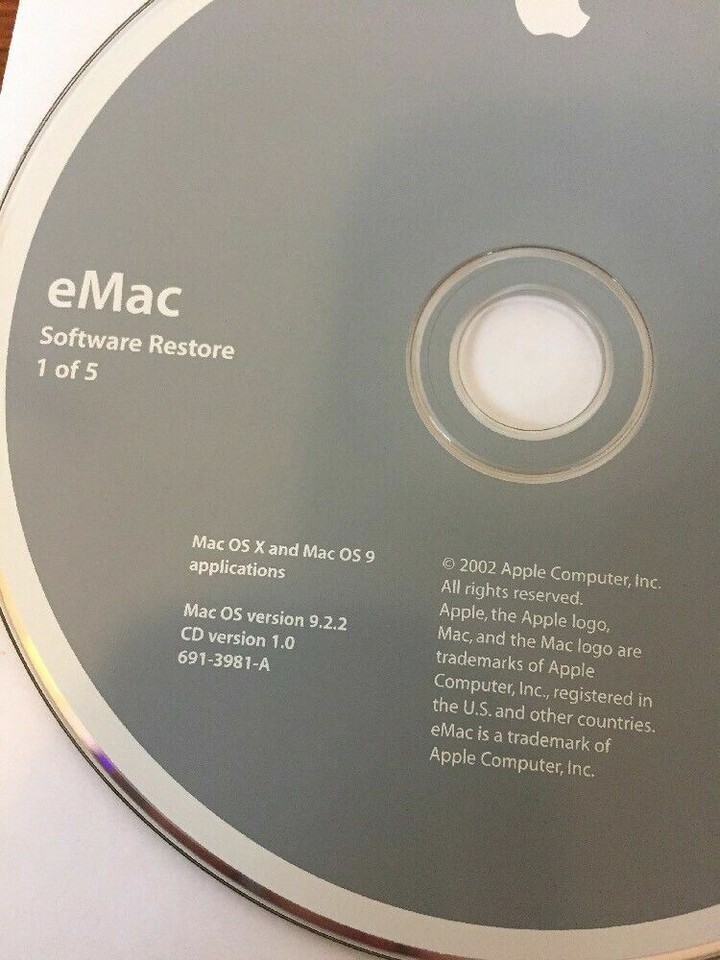 2002 eMac Mac OS X 9 9.2.2 Applications Macintosh Software Restore Install Discs