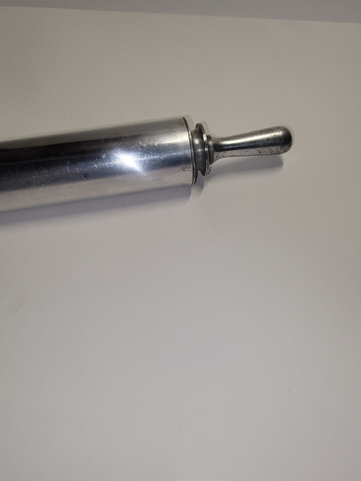 Vtg Mid Century Stainless Steel Rolling Pin Pastry Pizza Farmhouse Kitchen Decor