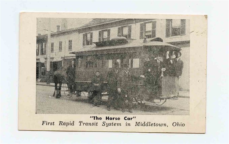 A 2 sided advertising card. on one side is Vote For Herbert S Miller for Municipal Judge in Middletown Ohio on November 8, 1949. On the other side is a picture of The Horse Car , first rapid transit system in Middletown Ohio. Measures about 3 3/4" x 2 3/8".
