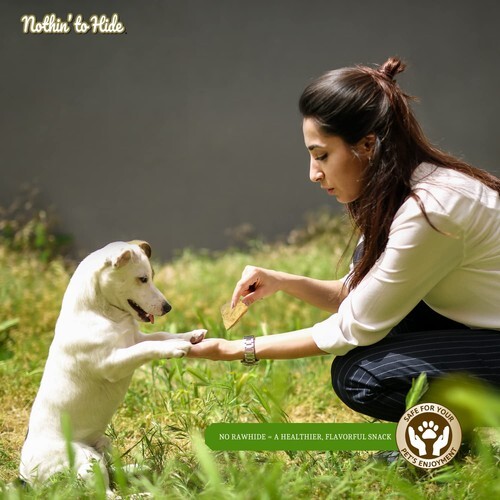 24 total chicken Flip Chips for dogs Alternative rawhide chip chews that are easy to digest Superior digestibility makes Nothin' to Hide a safer brand of natural dog chews Chewing on our gluten-free rawhide alternative chips supports your dog's strong teeth and healthy gums These chicken-coated chews are long lasting, highly digestible, and can help reduce canine anxiety by satisfying your dog's chewing instinct