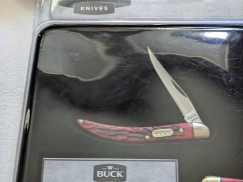 Set of 2 Buck 382 Trapper 385 Toothpick Combo Knife Collector Tin Red NEW