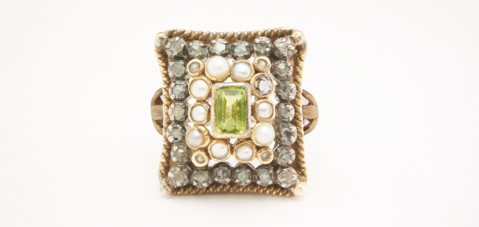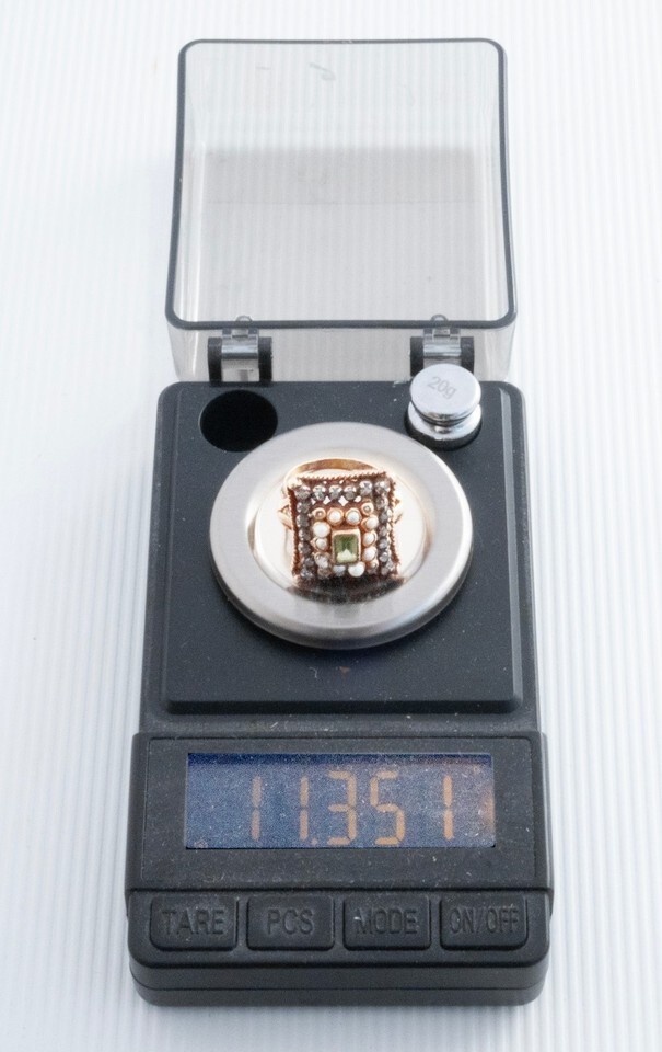 37 GEMSTONE CLUSTER PEARLS DIAMONDS 11g 19KHallmak GOLD RING 6.5 VINTAGE ENGLAND
