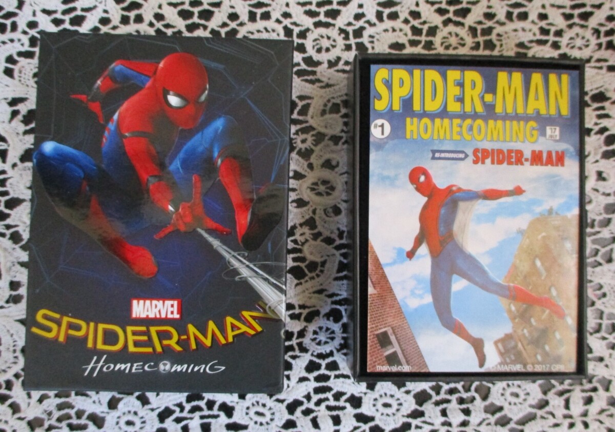 7K Metals 2017 Marvel Spider-man Homecoming Coin. Denomination $5. Issuing Authority Cook Islands. Finish Black Proof. Diameter 38.61mm. Edge milled. Mintage 25,0000. Comes in decorative box with card. Back side is picture of Queen Elizabeth. Same or next day ship.