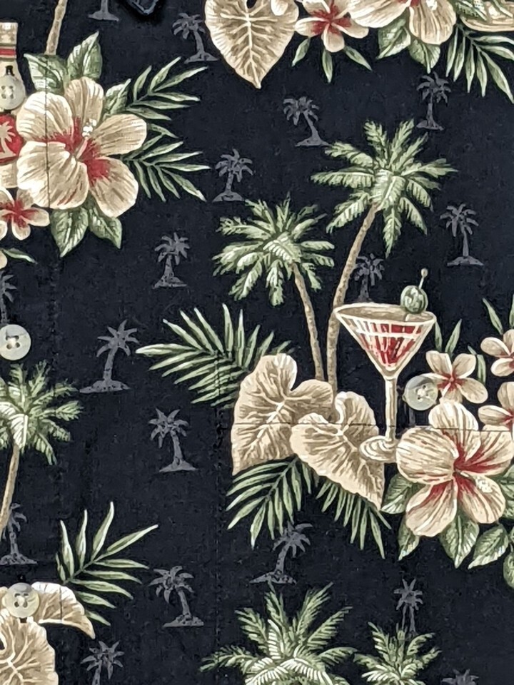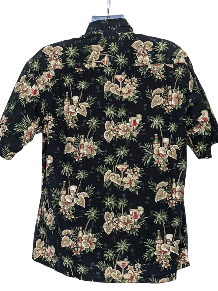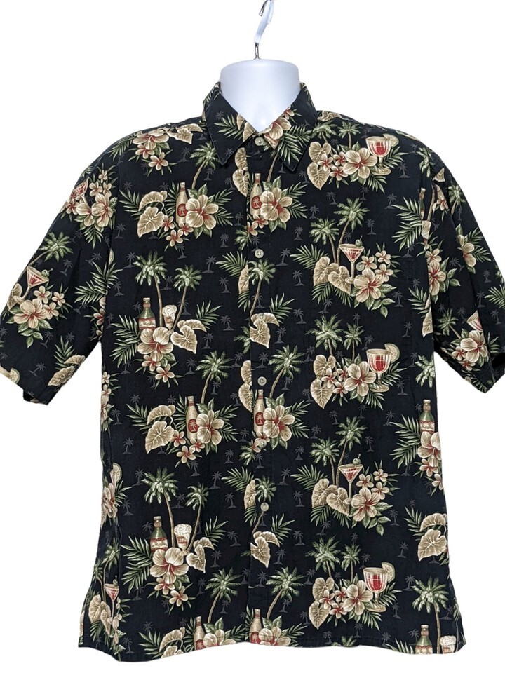Pierre Cardin Mens Hawaiian Button Up Shirt XL Floral Tropical Martini Glass