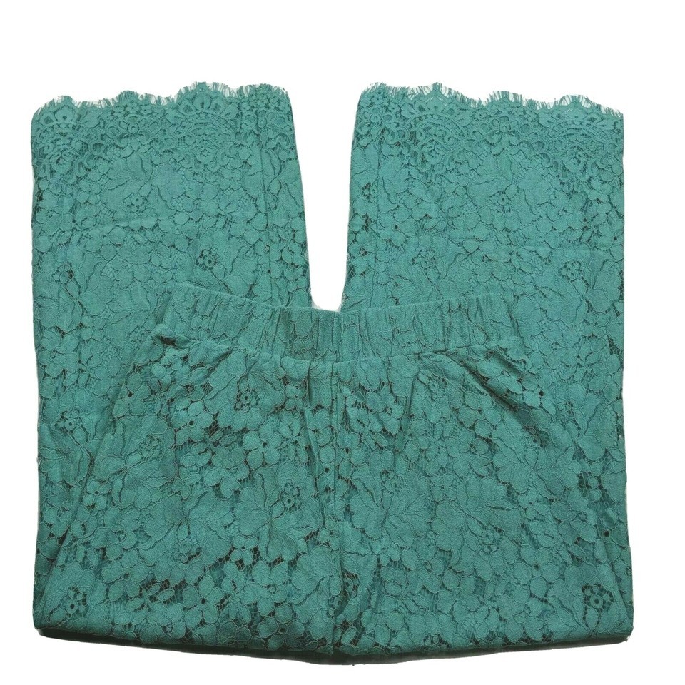Isaac Mizrahi Live! Regular Floral Lace Knit Culotte Pants Size XXS Turquoise