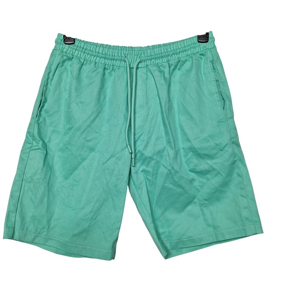 BoohooMAN Mens Twill Shorts Med Aqua Green Drawstring Casual Summer Beach