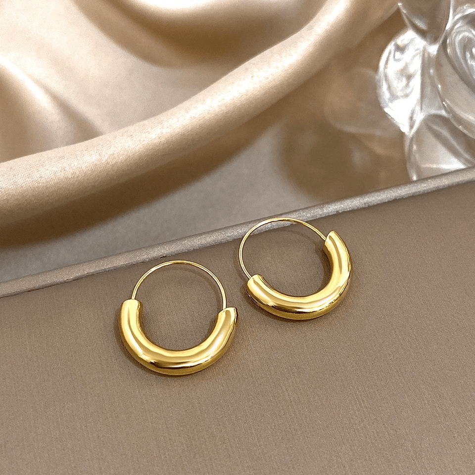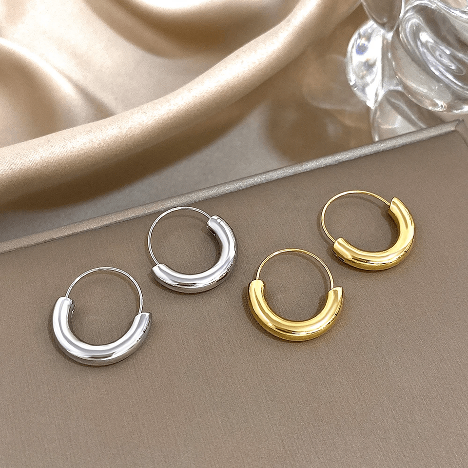 Glossy Stainless Steel Geometric Circle Earrings Waterproof Jewelry