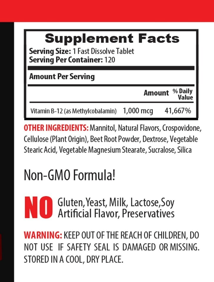 METHYLCOBALAMIN B-12 ENERGY PROMOTING VITAMIN: Vitamin B12 promotes the function of your metabolism because it is needed to convert carbohydrates into usable glucose in the body. Glucose from carbohydrate foods is used as a form of energy, so this is the reason why people with vitamin B12 deficiencies often experience fatigue. Vitamin B12 is also needed for neurotransmitter signaling that helps your muscles contract and gives you energy to go about your day without feeling lethargic and demotivated.