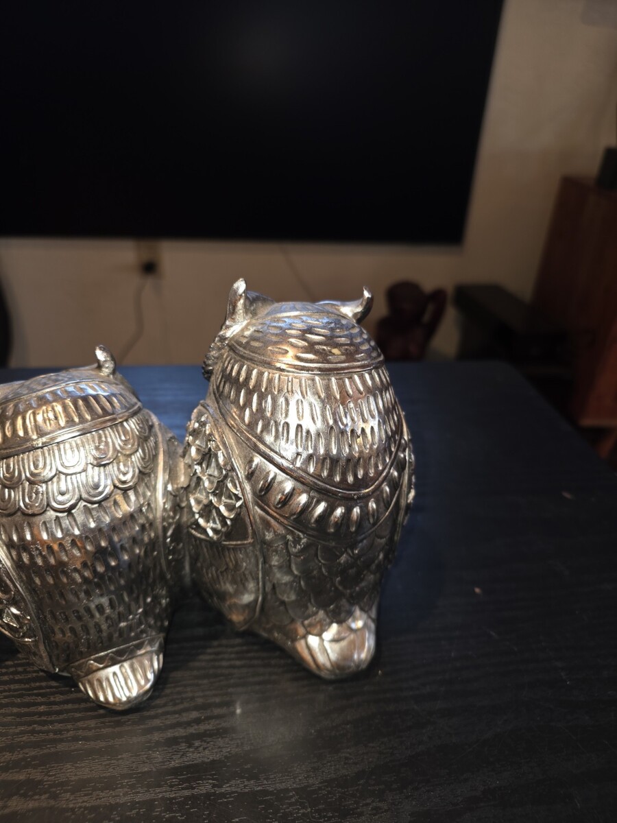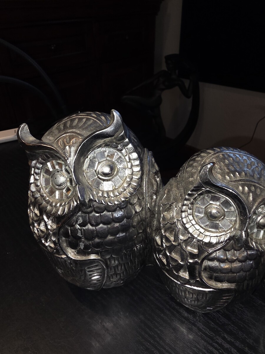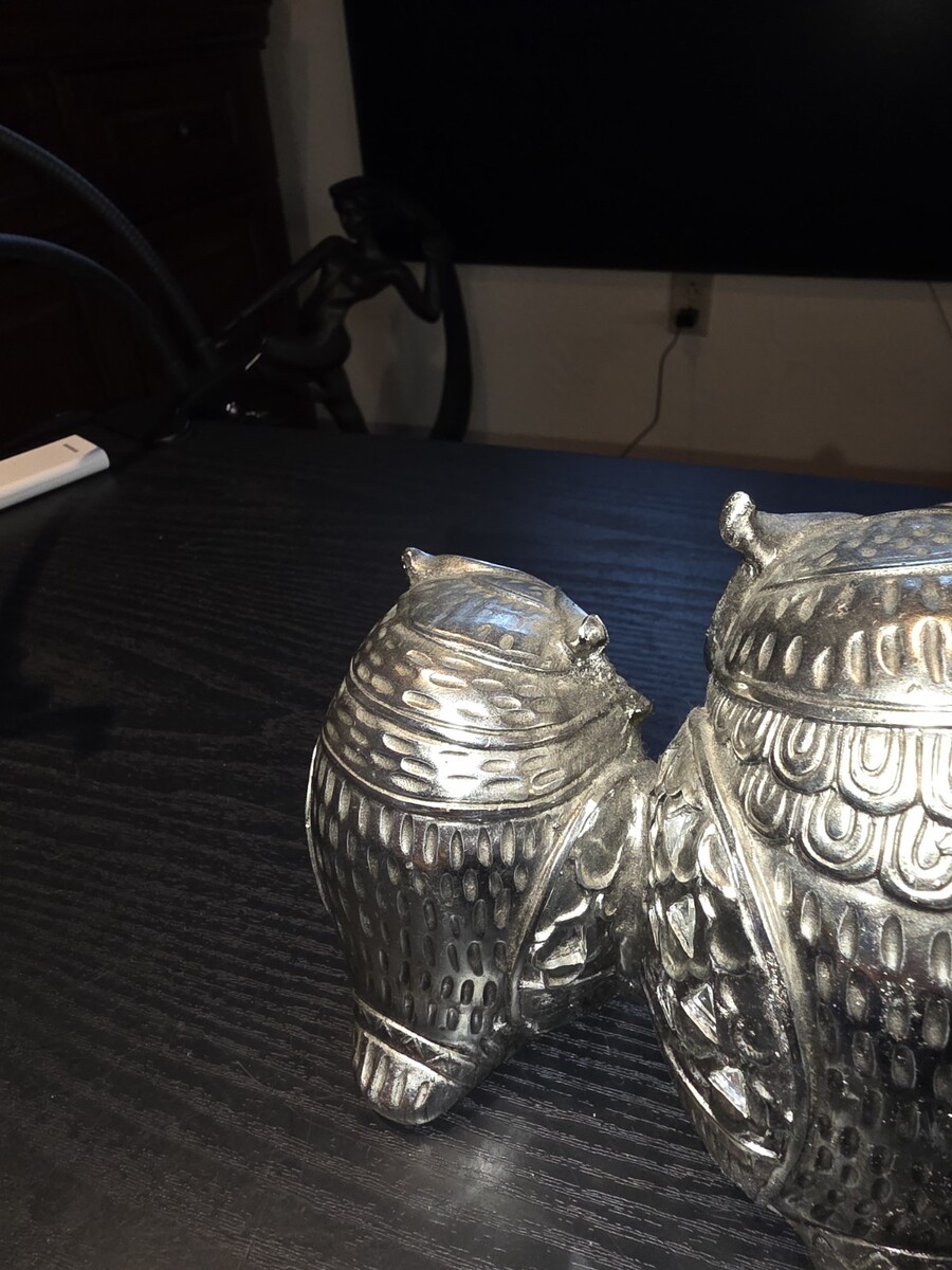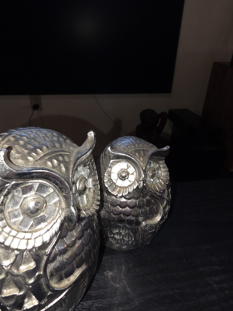 Set of 3 Silver Chrome Owl Ceramic Figurines and similar items