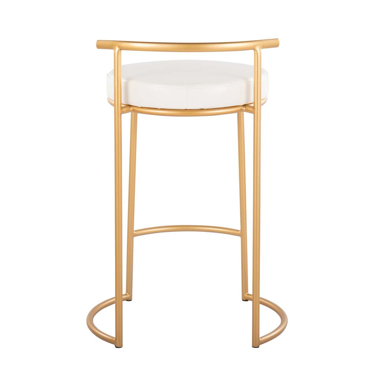 LumiSource Round Fuji 26" Gold White Faux Leather Counter Stool Set of 2