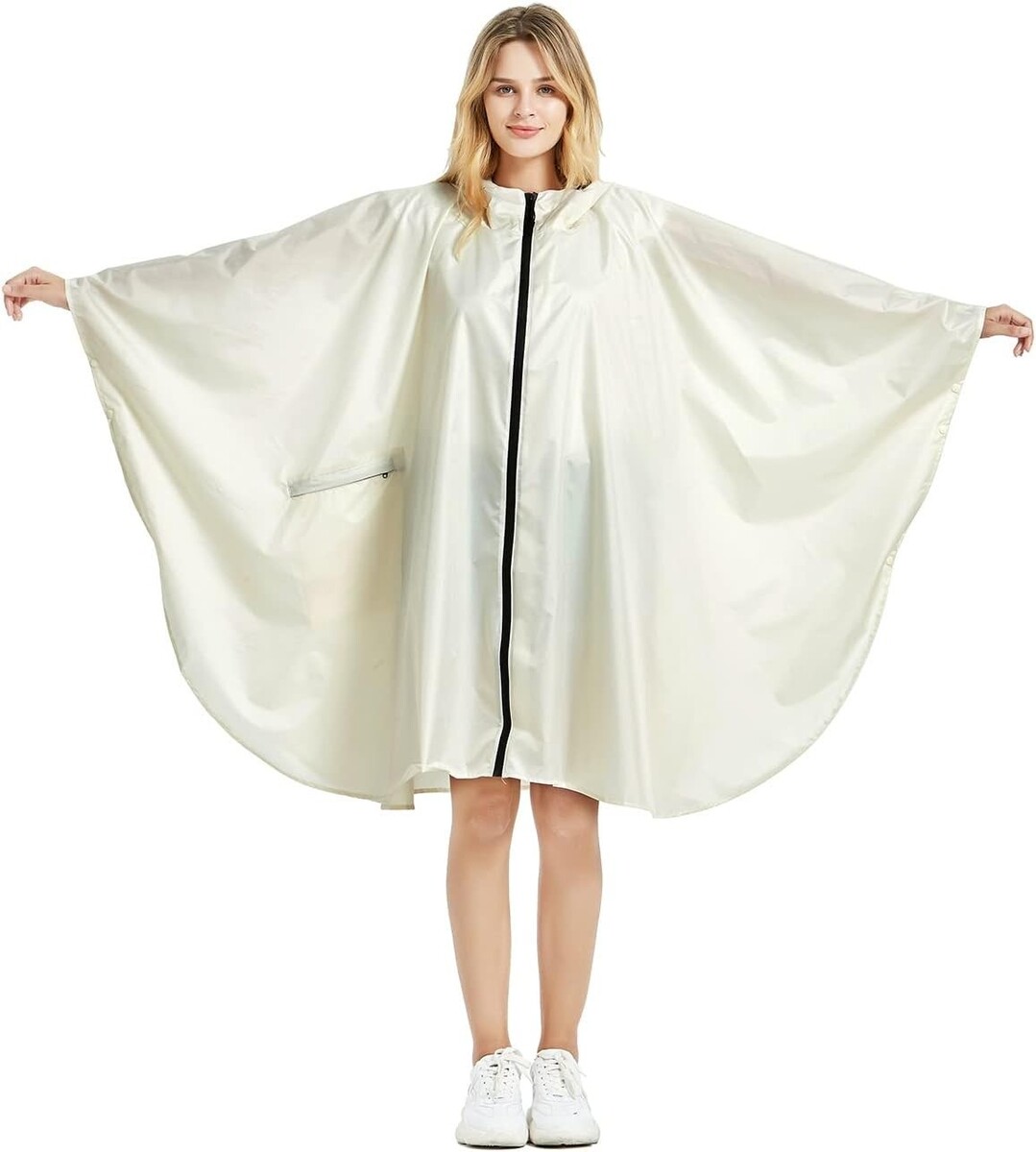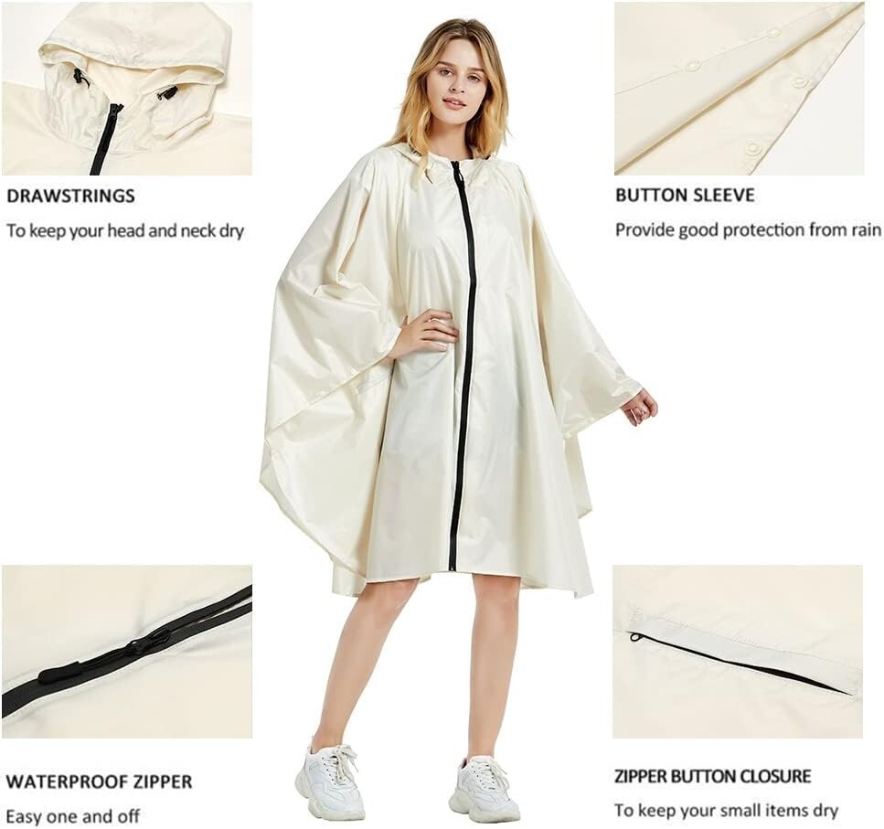 Thoughtfully Designed: Featuring a wide-brimmed hat hood with drawstrings for maximum coverage, a secure zipper closure, and four snap buttons on each sleeve with an elastic strap for a snug fit. The roomy front pocket ensures that your essentials stay dry even in torrential rains.