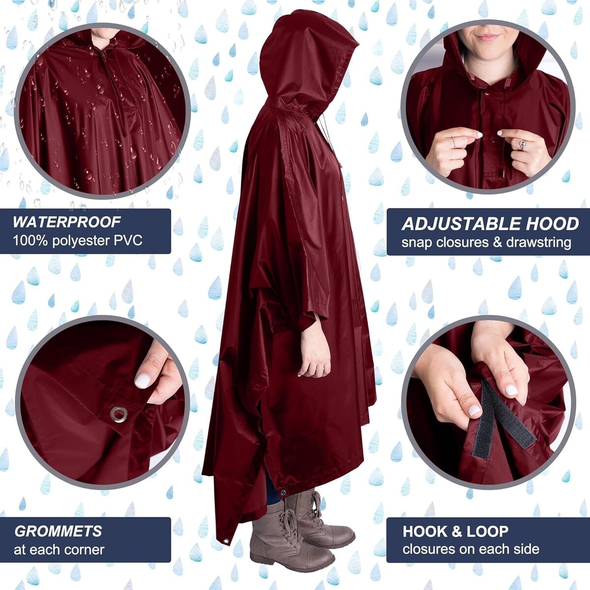 Don't let unpredictable conditions derail your outdoor plans! Whether embarking on a serene hiking trip, a camping adventure, or enjoying an outdoor music festival, this 100% waterproof hooded rain poncho ensures your comfort and dryness throughout your journey.