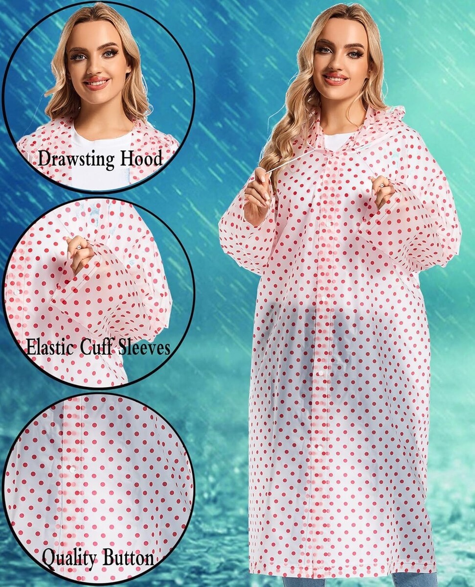 WATERPROOF: Crafted from eco-friendly EVA material, these raincoats are impermeable and 100% waterproof. Non-toxic and odor-free, they offer tear-resistant durability.