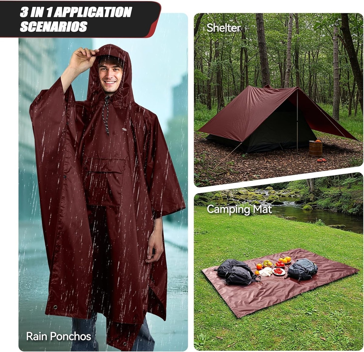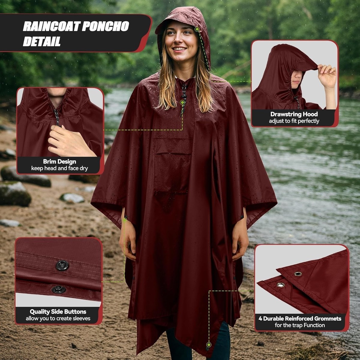 Versatile 3-in-1 Unisex Rain Poncho with Pocket - Ideal for Hiking Camping
