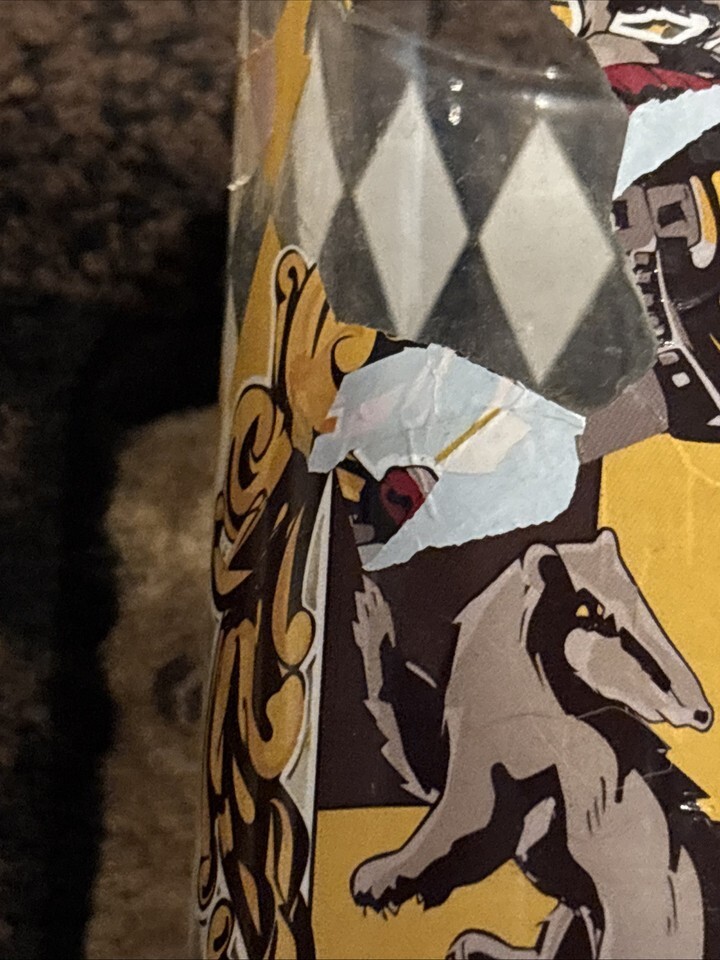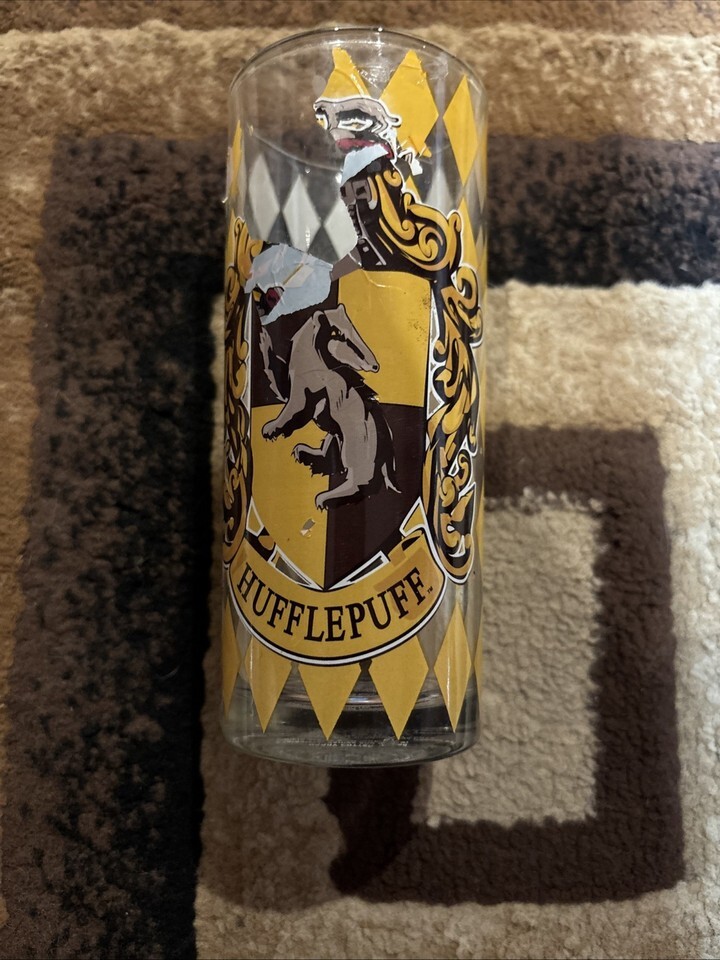 The Harry Potter Hogwarts ?Hufflepuff? Collector 10oz Drinking Glass is a must-have item for any fan of the fantasy franchise. Featuring the iconic Hufflepuff design, this collector glass is perfect for enjoying your favorite beverages while showing off your love for the magical world of Harry Potter. The glassware is officially licensed by the brand and is ideal for adding a touch of enchantment to any collection or display. Perfect for both Harry Potter enthusiasts and collectors alike, this glass is a unique and charming piece that will surely delight fans of the series. This glass has some parts of the image peeling as pictured.