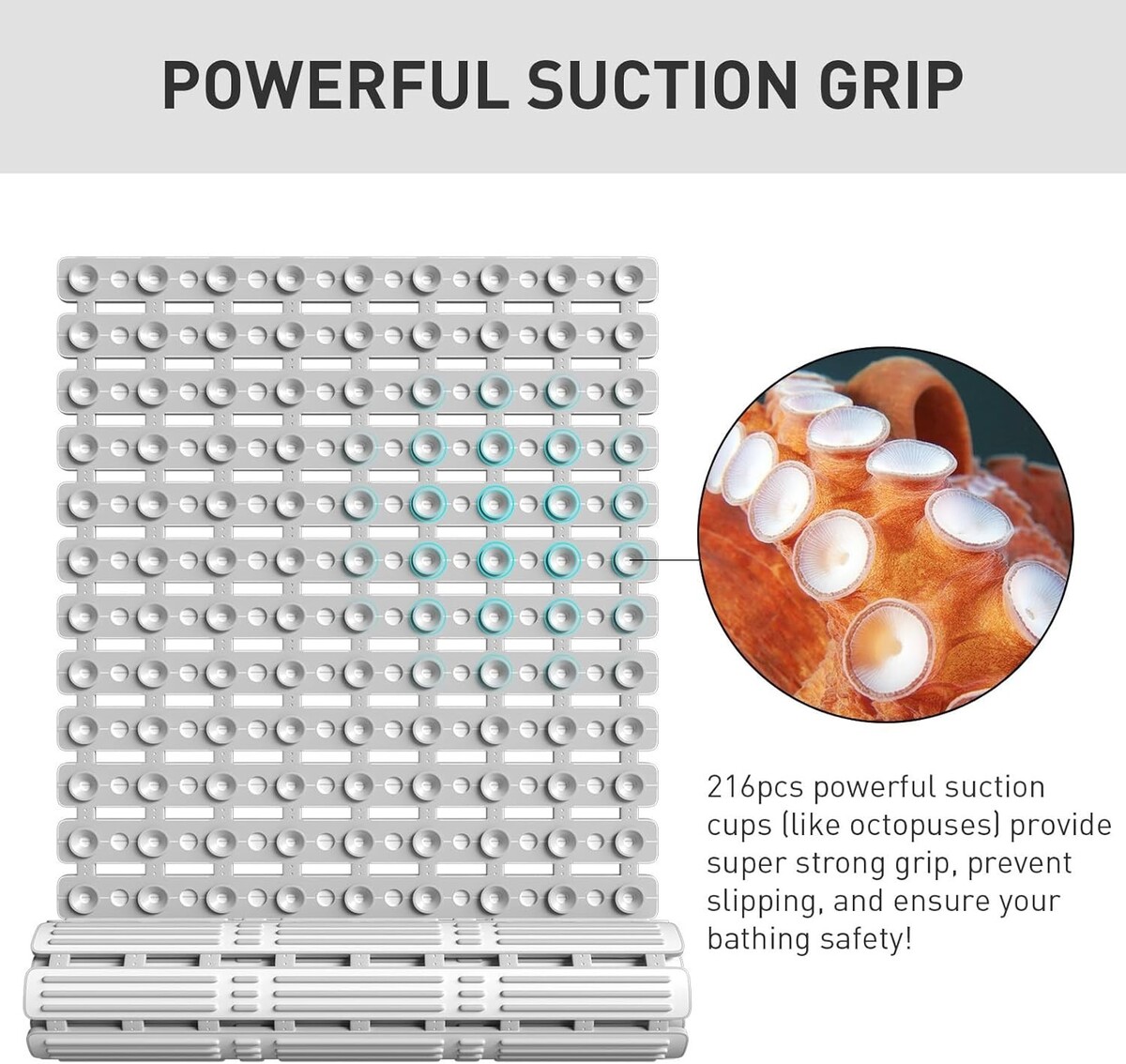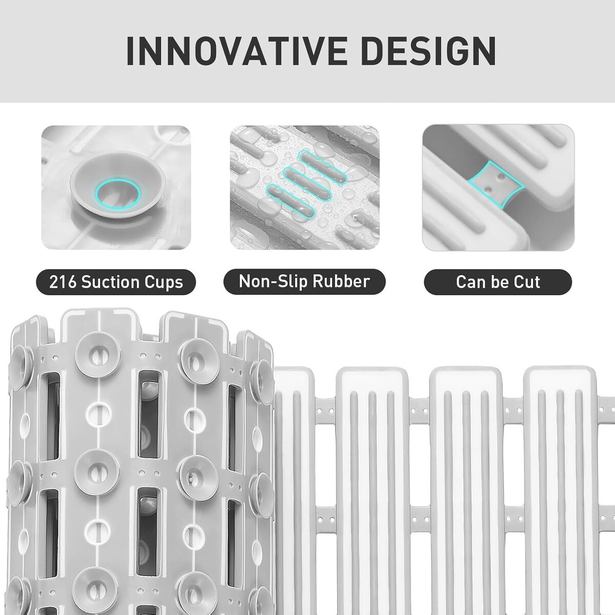 Non-Slip Safety: Equipped with 216 powerful suction cups, our shower mat offers unmatched traction and stability, keeping it firmly in place on smooth surfaces.