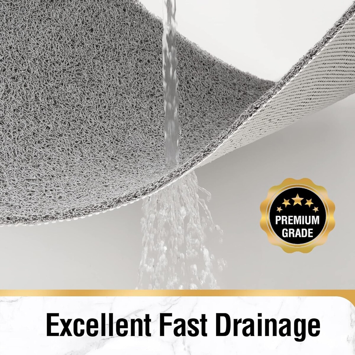 With its effective drainage system and soft PVC material, you can step out of the shower and onto a gently cushioned surface that protects your feet from cold floors while providing a safe, secure foothold. This mat blends elegance with functionality, perfect for enhancing any bathroom space.
