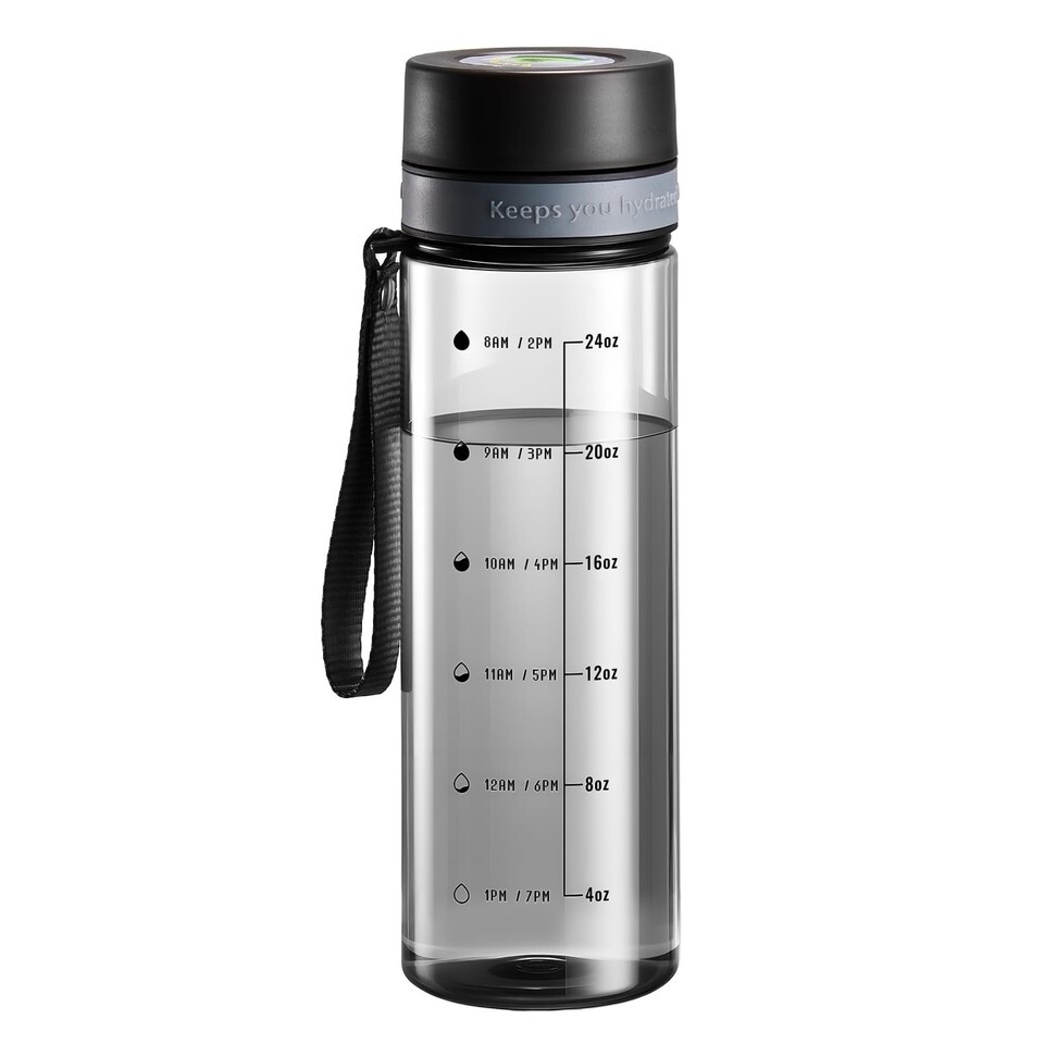 Motivational Time Marker: Our 28OZ reusable water bottle with time marker, reminding you to stay hydrated. Whether you?re at work, the gym, or on the go, this reusable water bottle reminds you to drink regularly?making it an ideal gym water bottle.
