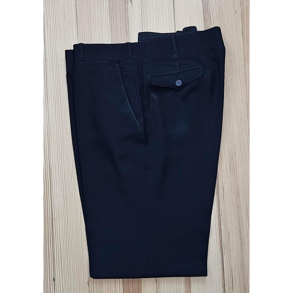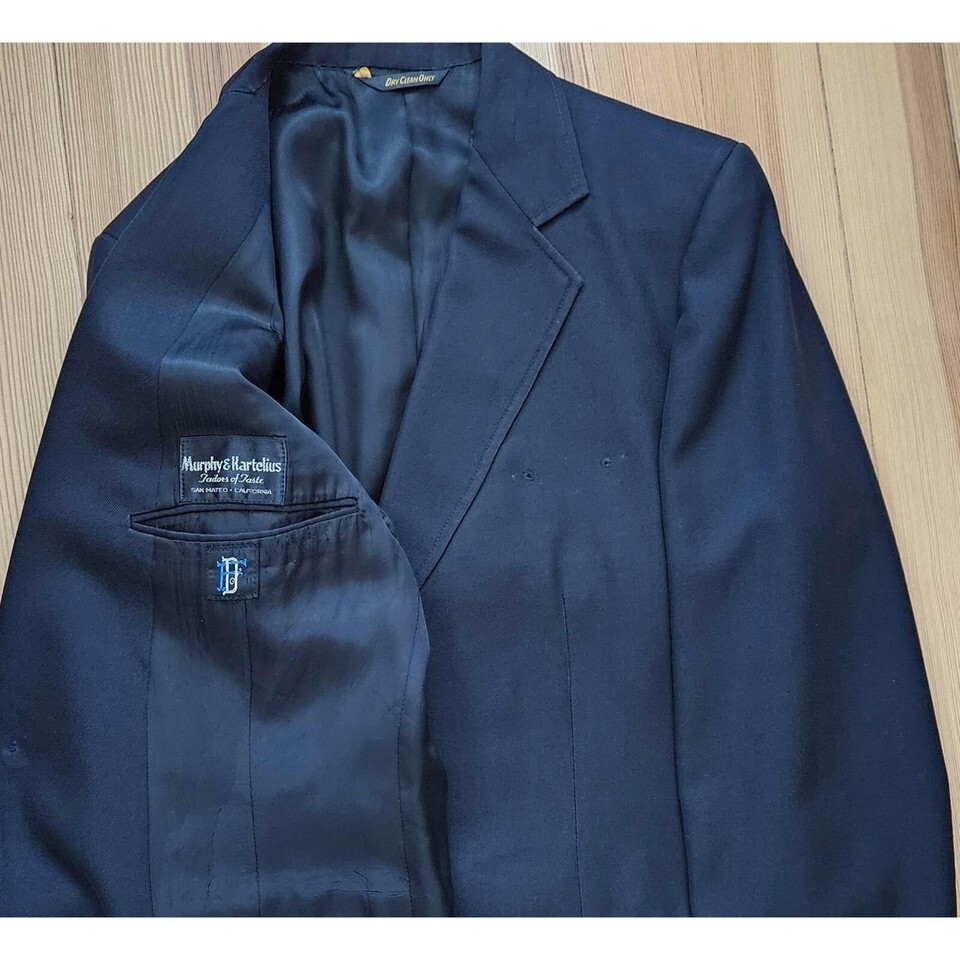The men's captain pilot uniform was custom-made by Murphy Hartelius, Tailors of Taste, located in San Mateo, California. Because the suit was custom-made there are no labels with sizes. I have measured the suit and think that the suit coat is around a Men 41 Tall and the pants are 35-32. The suit coat has a label with my uncle's initials. The suit is made of high-quality heavy fabric and weighs around 4 lbs. There are signs of wear in the lining consistent with its age, but it is in good vintage condition.