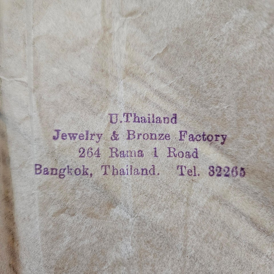 Discover the elegance of Thai craftsmanship with this impressive 166-piece vintage bronze flatware set, featuring rosewood handles with a Buddha motif. Each piece is a testament to the skilled artisans of the U. Thailand Jewelry and Bronze Factory, renowned for their quality and attention to detail. From my research, I believe that the "U. Thailand" embossing on the flatware's handle is likely related to the Siam Bronze Factory, a renowned brass and bronze flatware and tableware manufacturer in Bangkok, Thailand. The factory, which has operated since 1954, is known for its high-quality, handcrafted products made from bronze, brass, and stainless steel. The vintage bronzeware flatware from Thailand, also known as Siam, is a unique tableware handmade by skilled craftsmen, typically featuring rosewood handles carefully shaped and joined to the bronze stem.