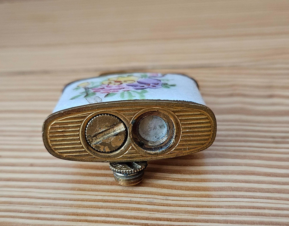 Vintage Evans Cigarette Lighter, Ladies Floral Enamel Finish, 1.5" x 1.5"