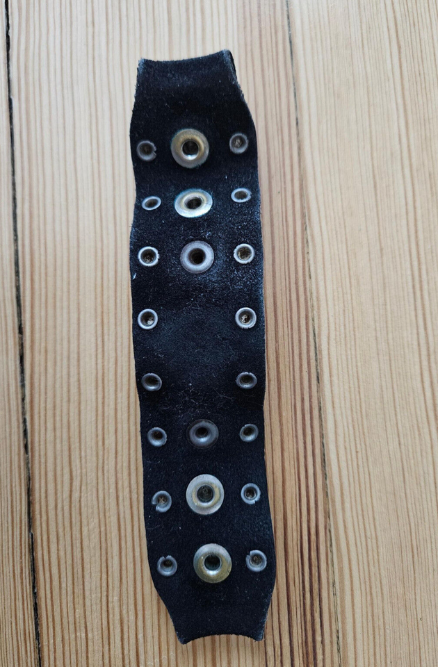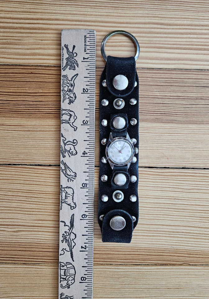 Vintage 1970s Lady Elgin 17 Jewel Wrist Watch w/ Black Suede Metal Stud Band