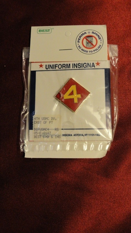 NEW QTY OF 2 BEST EMBLEM INSIGNIA USMC 4TH MARINE DIVISION PIN SI 1257