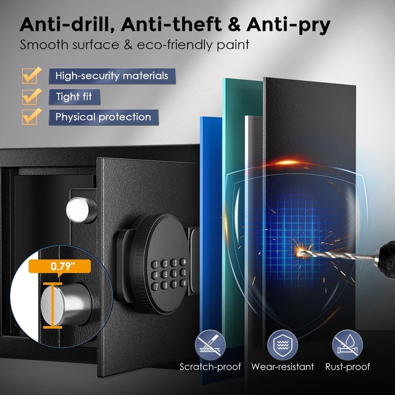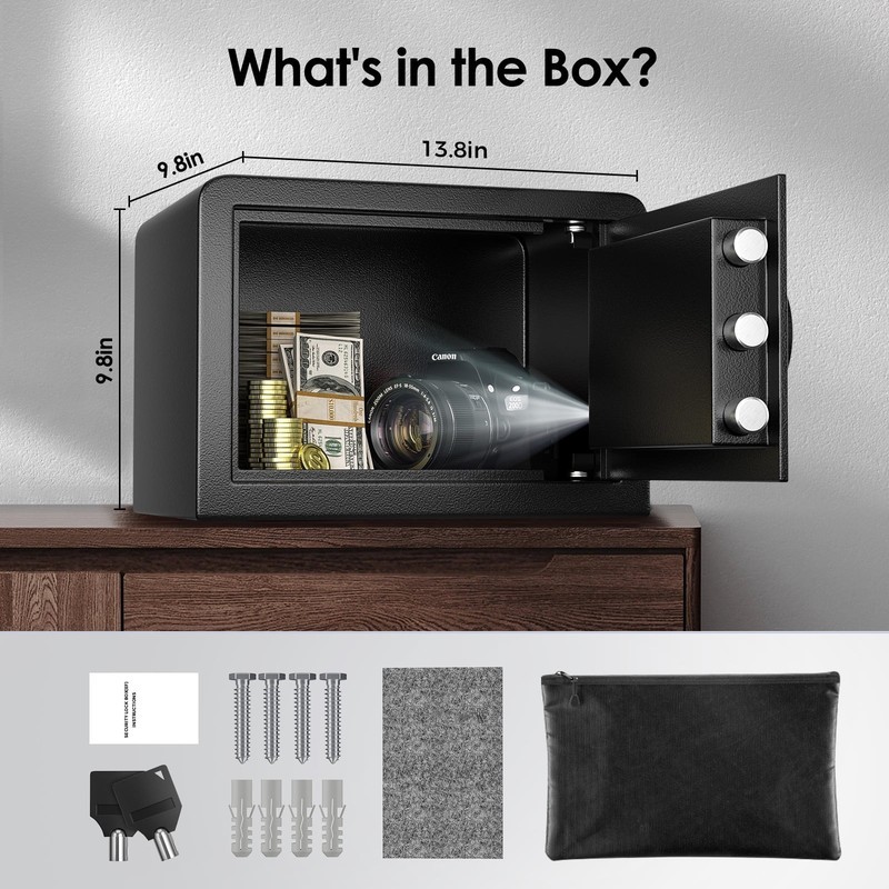 SRWTRCHRY 0.7 Cu. ft. Safe Box, Lock Box with Fireproof Safe Bag, Cash Box, Money Box with Key, Small Safe, Digital Keypad Lock, Wall-Mount Safe SRWTRCHRY is a leading brand specializing in the production of security safes. Together with thousands of dedicated employees, SRWTRCHRY is committed to providing durable safes to customers. Today, SRWTRCHRY has captured markets in over 200 countries and boasts over 10 million global members. Why Choose SRWTRCHRY? 1. Stringent Quality Assurance 2. Unbeatable Low Prices 3. Swift and Secure Delivery 4. 30-Day Free Returns 5. 24/7 Professional Customer Service