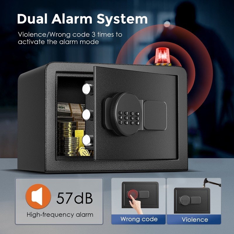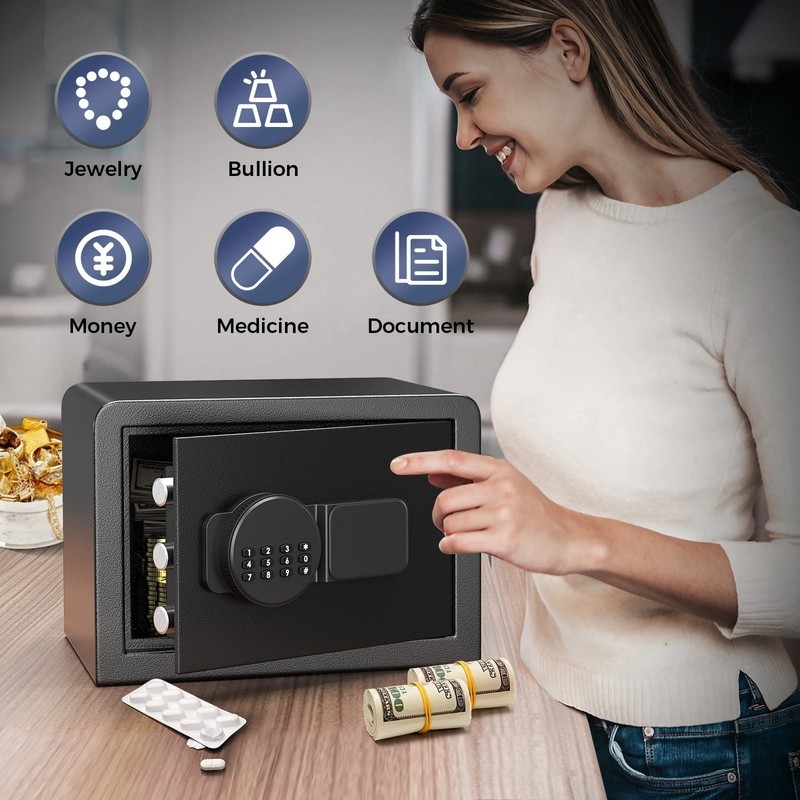 0.7 Cu. Ft. Safe Box,Keys Digital Keypad Lock, Home Safe for Money, Wall Mountable, Black