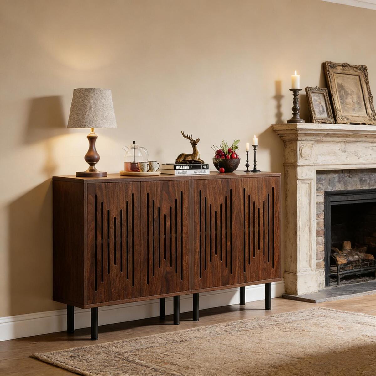 Classic and Versatile - This beautifully designed storage cabinet enhances any room with its carved door designs. It's versatile enough to serve as a sideboard, bar cabinet, or an accent storage cabinet in various rooms.