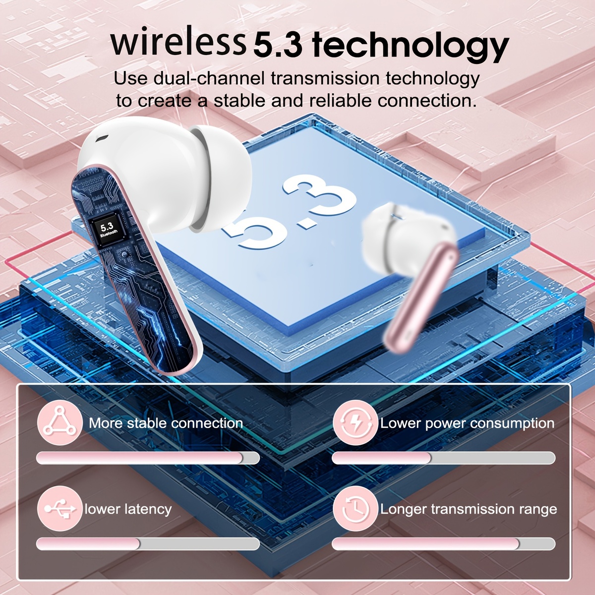 [Bass Stereo Sound] Wireless Earphones, Wireless 5.3 Earphones with Bass Stereo