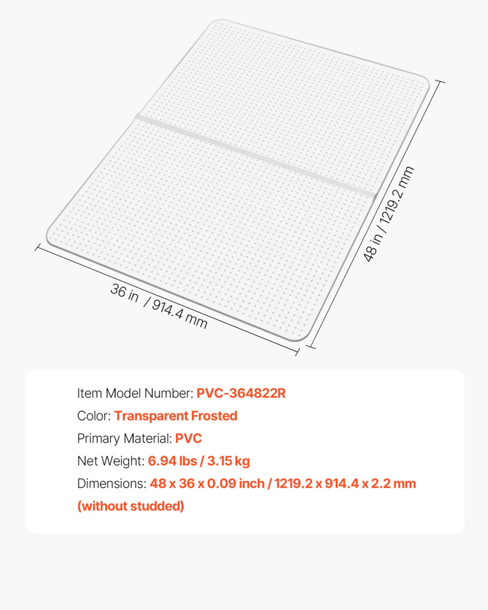 VEVOR Chair Mat 36 x 48 for Carpeted Floors ? Non-Slip PVC