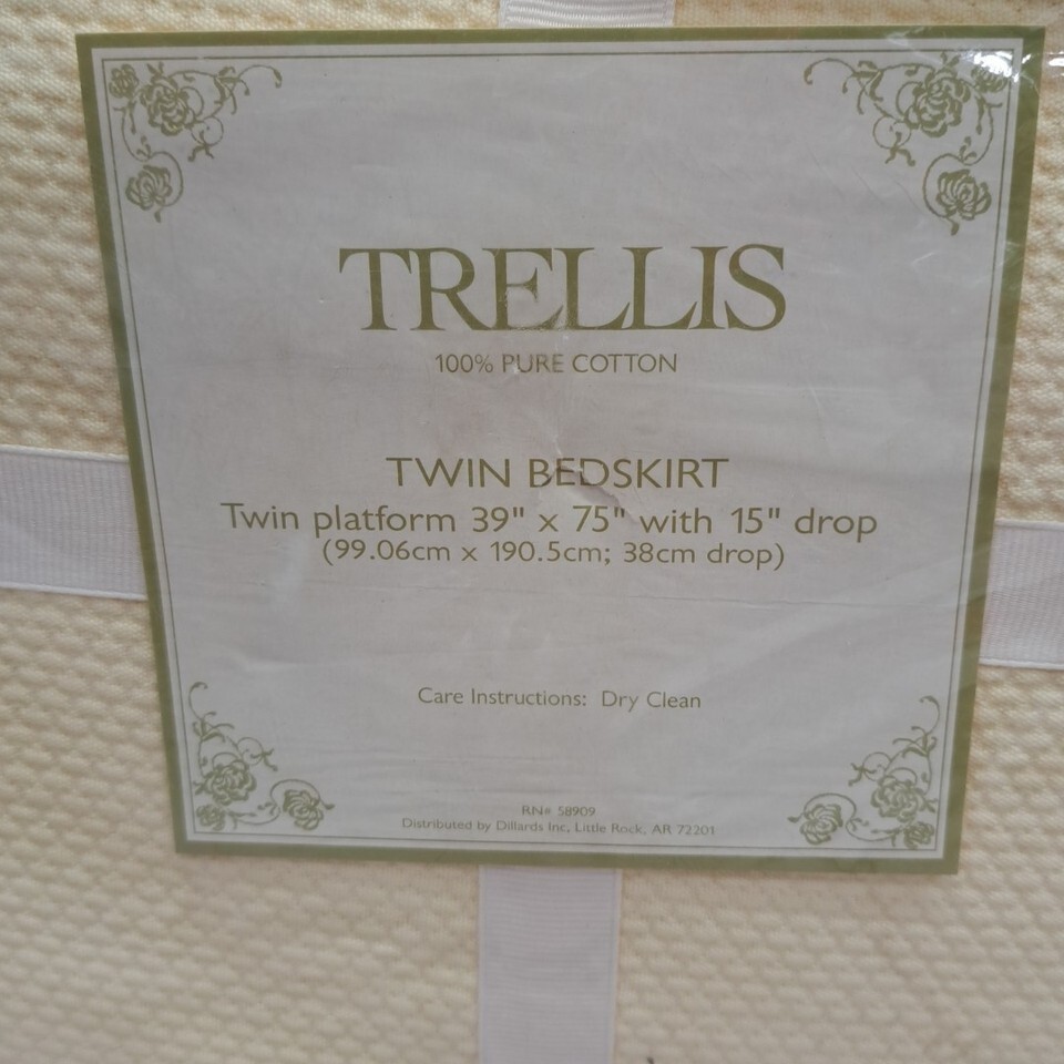 VTG Noble Excellence Trellis Twin Bed Skirt 100% Cotton Made In Portugal