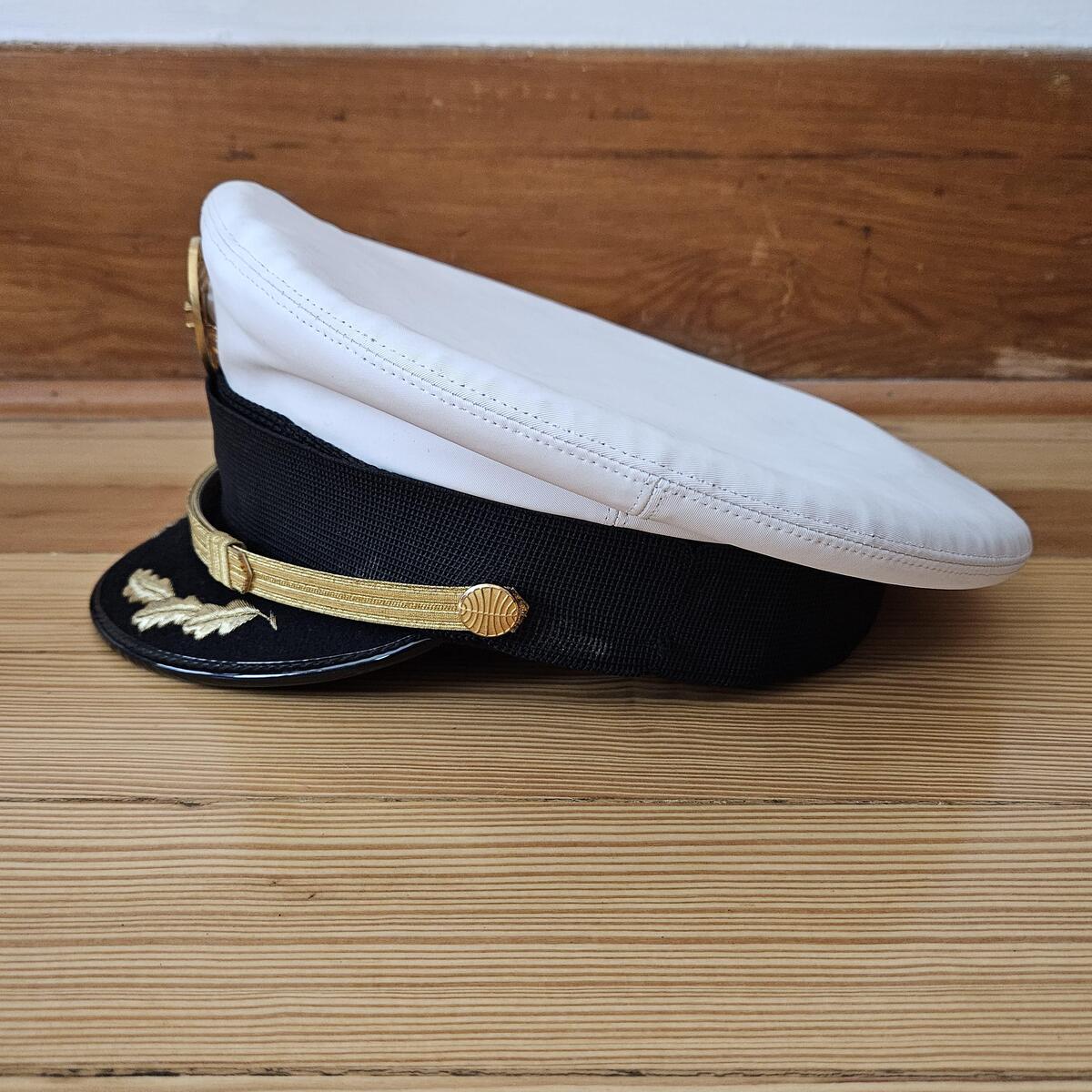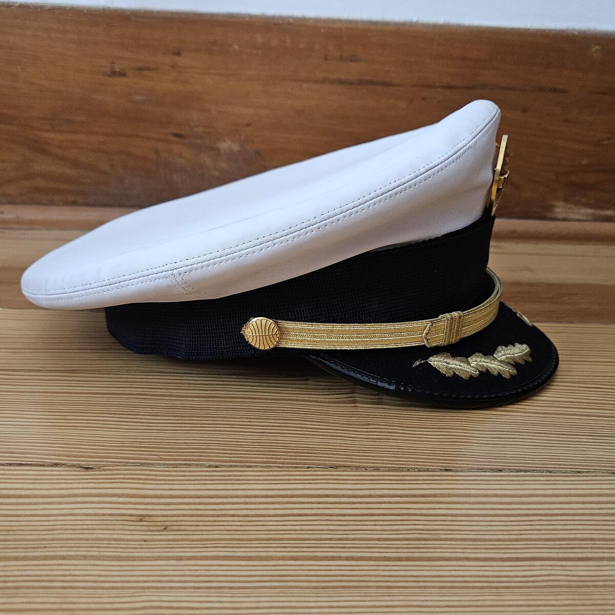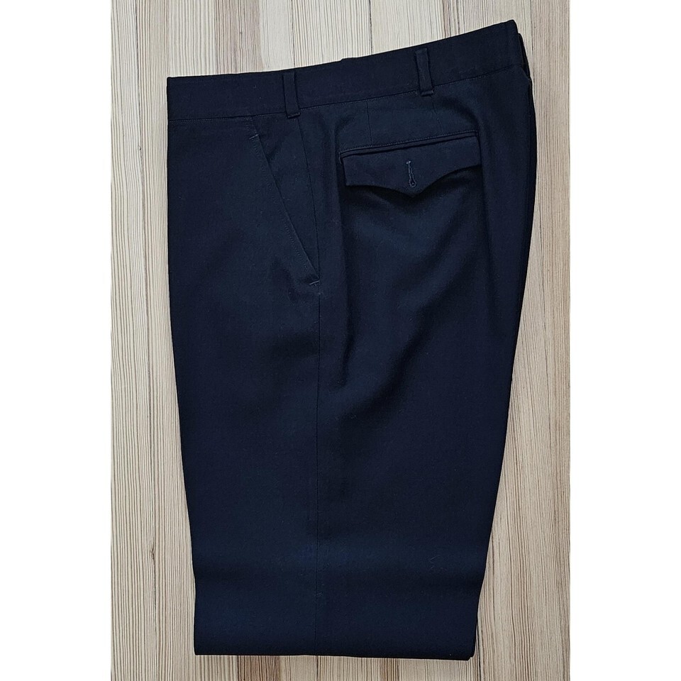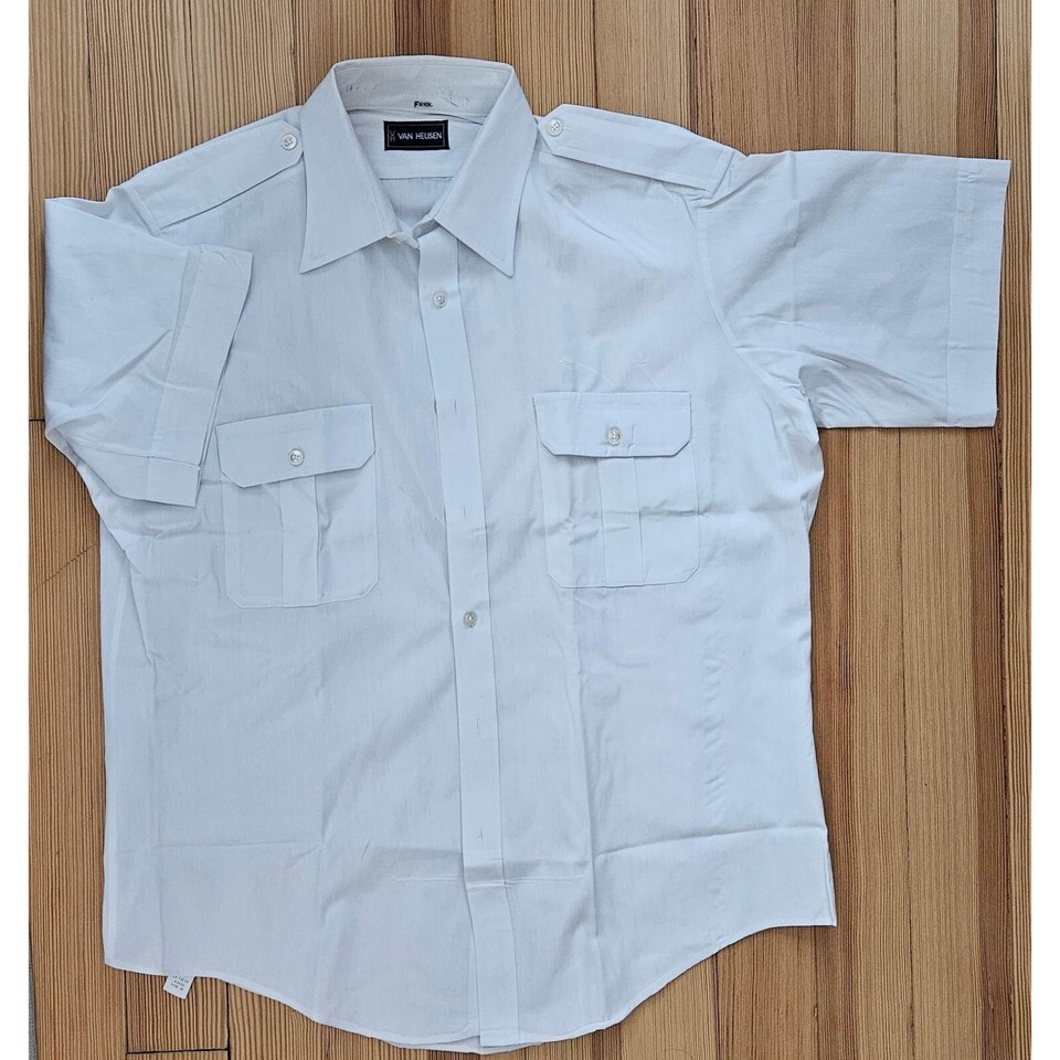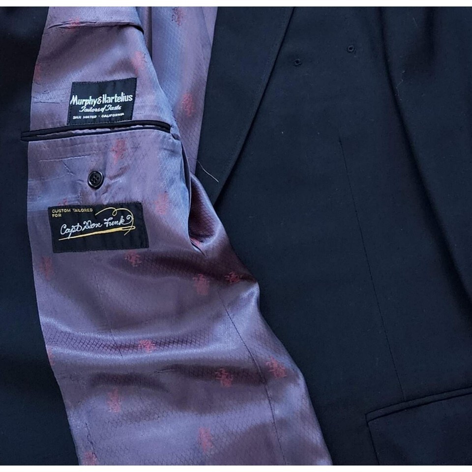 The men's captain pilot uniform was custom-made by Murphy Hartelius, Tailors of Taste, located in San Mateo, California. Because the suit was custom-made there are no labels with sizes. I have measured the suit and think that the suit coat is around a mens 43 Tall and the pants are around 36-34. The suit coat has a special label with the inscription "Custom Made for Capt Don Funk". The suit is made of high-quality heavy fabric and weighs around 4 lbs. The suit is in good vintage condition. The clip-on tie included with the ensemble measures 18" in length and is 3 1/2' wide. The label on the back shows that it is a Smoothie button-down tie made by the Schreter Company. The pilot shirt included was made by Van Heusen. It is a short-sleeved men's Tall, 16 1/2". The shirt has a blue label with "Van Heusen". It sports pleated pockets with a place to put your pen. There are some light stains on the shirt. Completing the ensemble is a captain's pilot hat. The hat is a size 7 5/8". The top measures 10 3/4" in diameter. The inside of the hat band has faint remnants of the company that made the hat. Based on research, I believe that it was likely made by the Bernard Cap Co., but that is just an educated guess The hat includes the badge and is in good condition, but there is a faint outline on the inside of the bill consistent with a sticker. The ensemble does not include the pilots wings. Please evaluate the photos for everything included in the listing and don't hesitate to contact me if you have any questions.