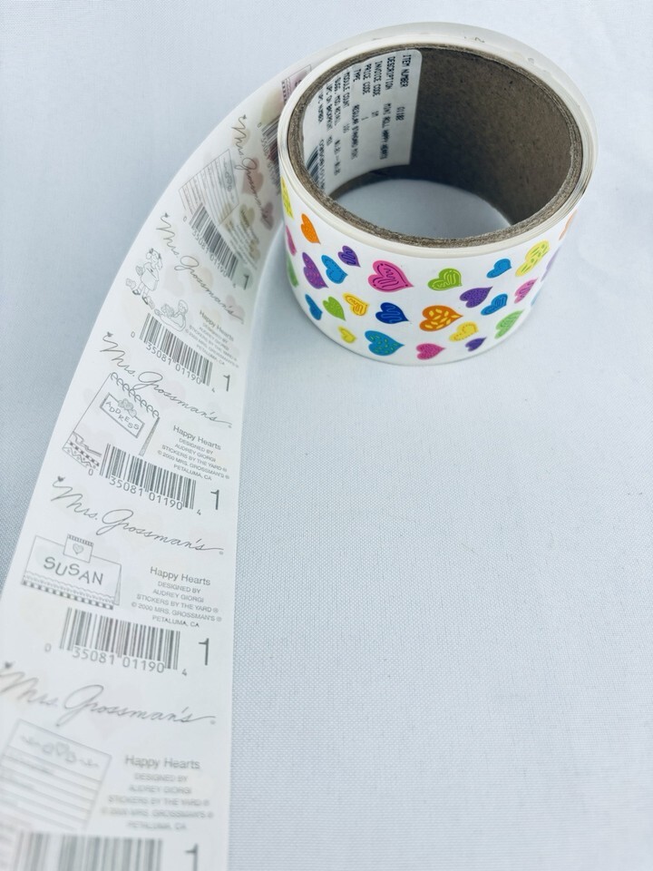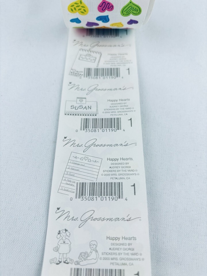 Vintage 2000 Mrs. Grossman's Sticker Roll Happy Hearts 88 Sheets - Scrapbooking