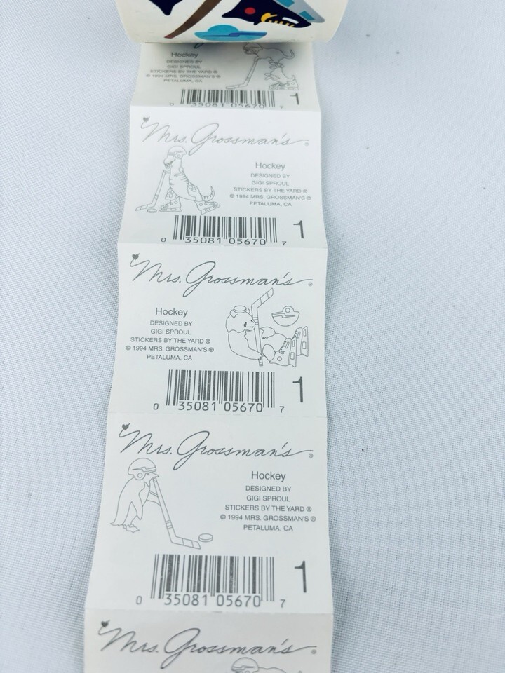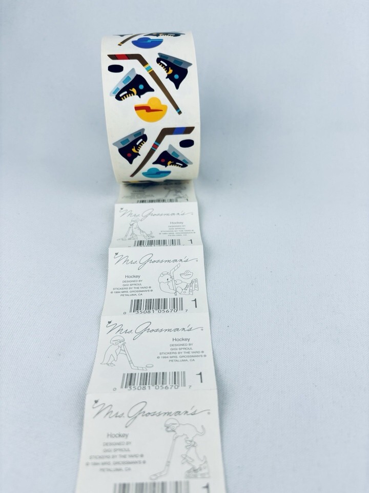 Vintage 1994 Ice Hockey Mrs. Grossman's Stickers Roll Scrapbooking Sports Skates
