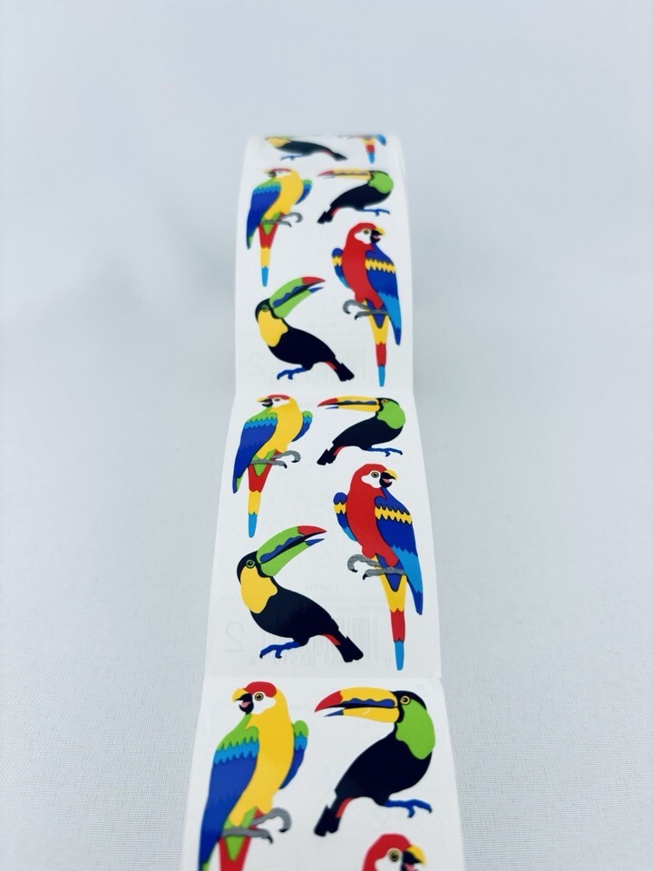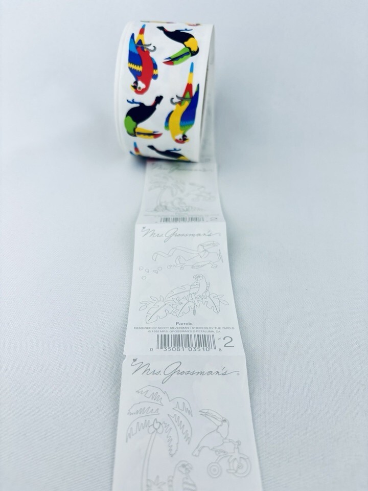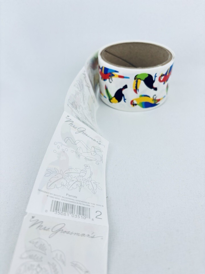 Vintage 1992 Parrots Mrs. Grossman's Stickers Roll Scrapbooking Birds Animals