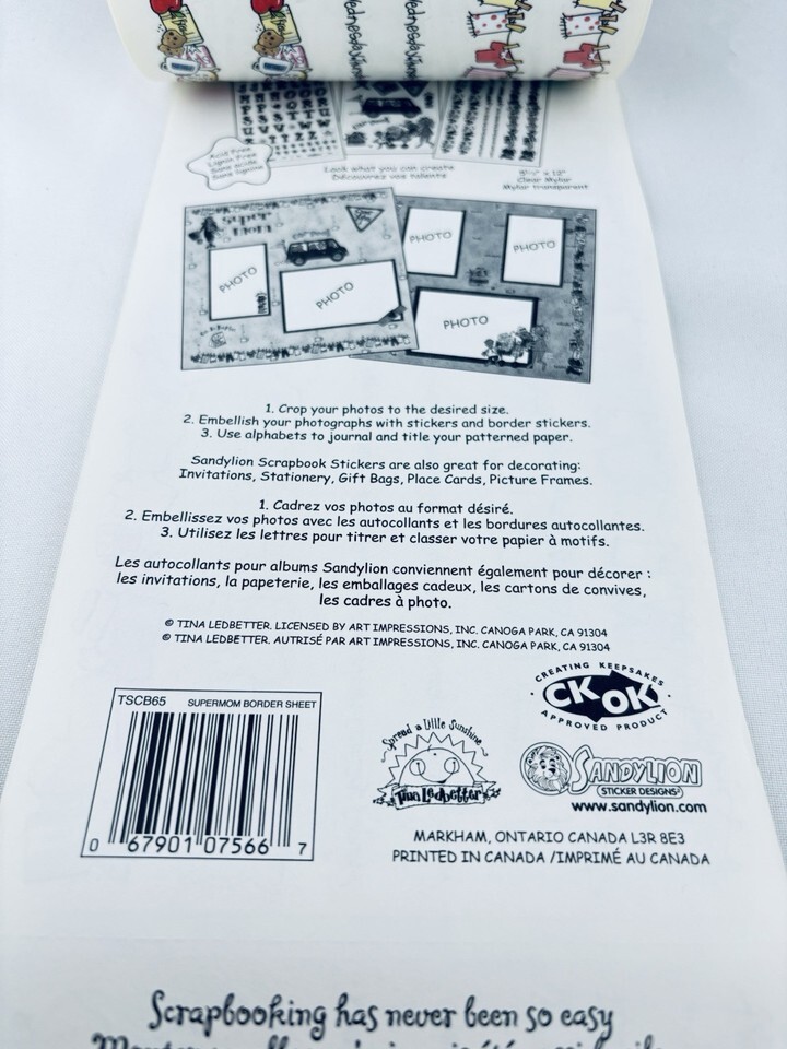 Vintage Sandy Lion Sticker Roll Super Mom Border Sheets Scrapbooking Sandylion