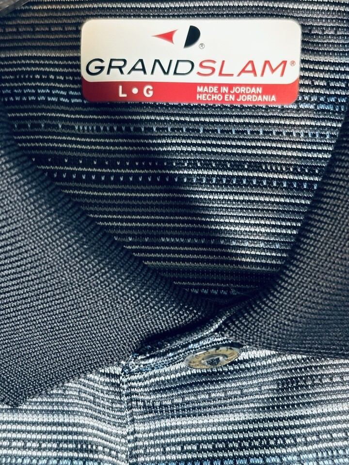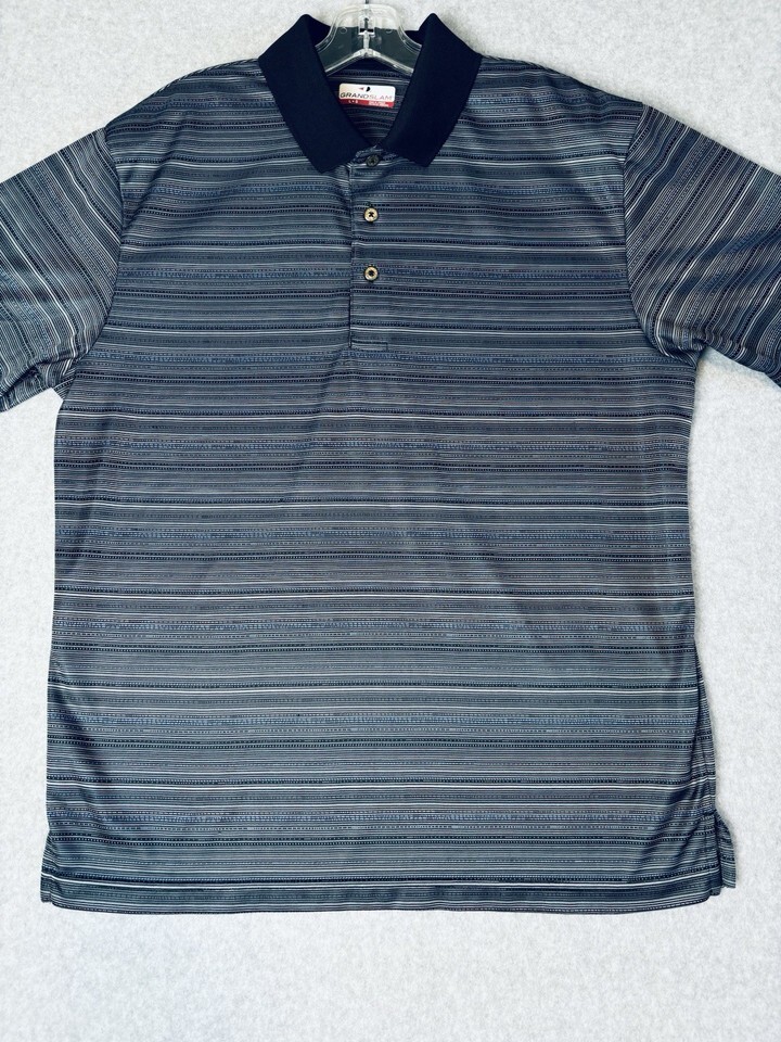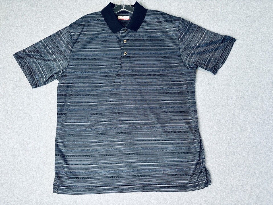 Grand Slam Golf Polo Shirt Black Blue Striped Short Sleeve Men?s Large