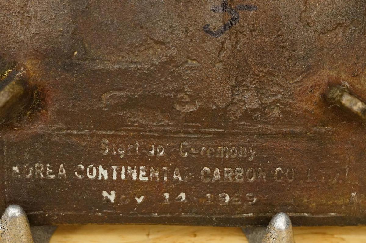 Vintage Korea Continental Carbon Co Start Up Ceremony Solid Brass Tray 1969