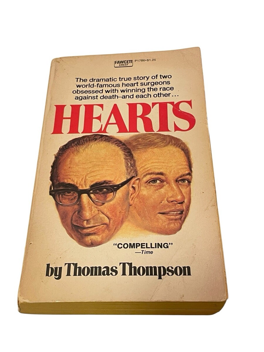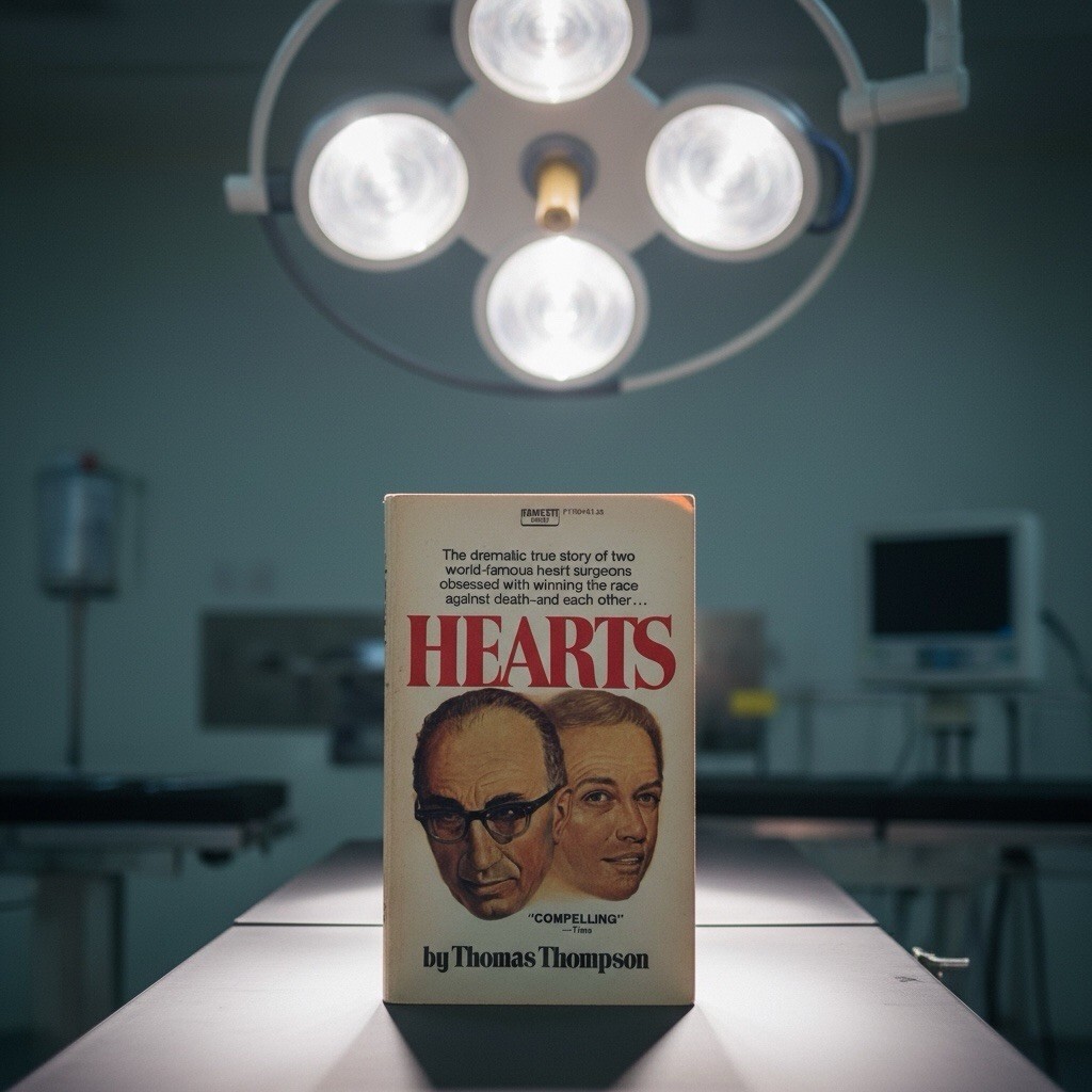 Hearts by Thomas Thompson is a true story and non-fiction novel that details the intense rivalry between two pioneering heart surgeons, Dr. Michael Ellis DeBakey and Dr. Denton Arthur Cooley. The book, originally published in 1971, focuses on their work at the Texas Medical Center in Houston during the dawn of the heart transplant era.