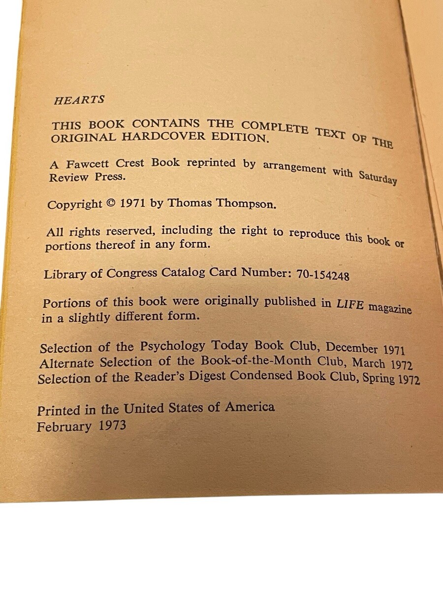 Hearts -by Thomas Thompson - Soft Cover 1973 and 44 similar items