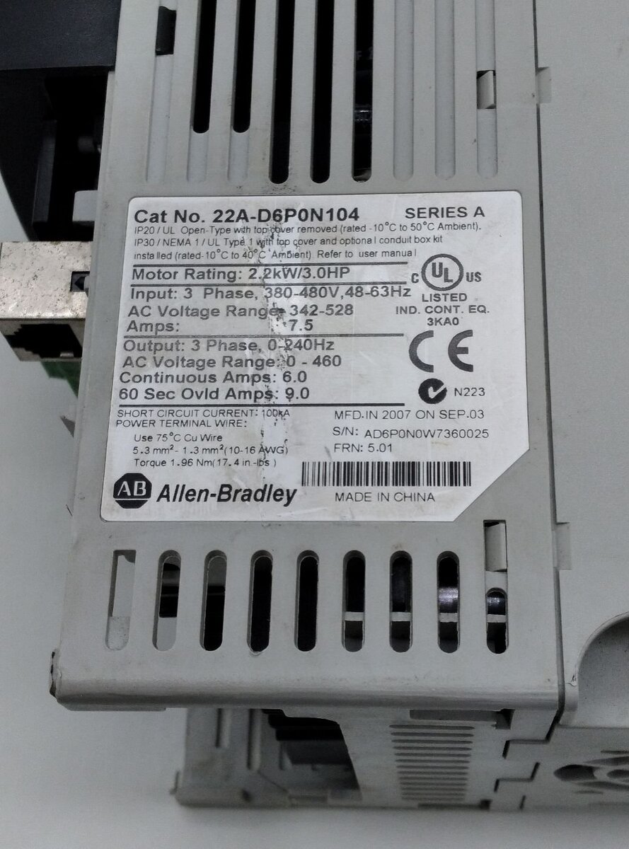 Allen-Bradley 22A-D6PON104 SER.A PowerFlex 4 AC Drive, 2.2kW 460V 6Amp